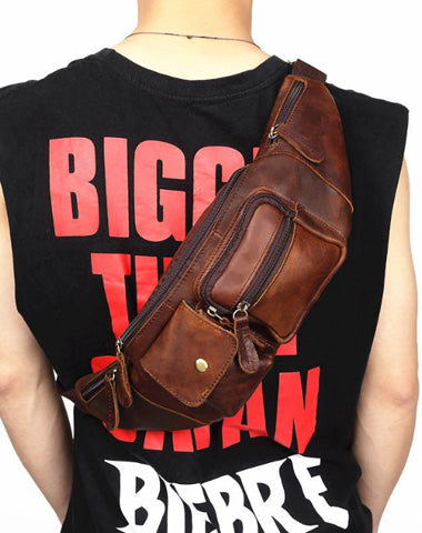 Style: Vintage Brown Leather Men's Waist Bag Fanny Pack Hip Pack For Men