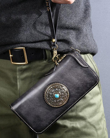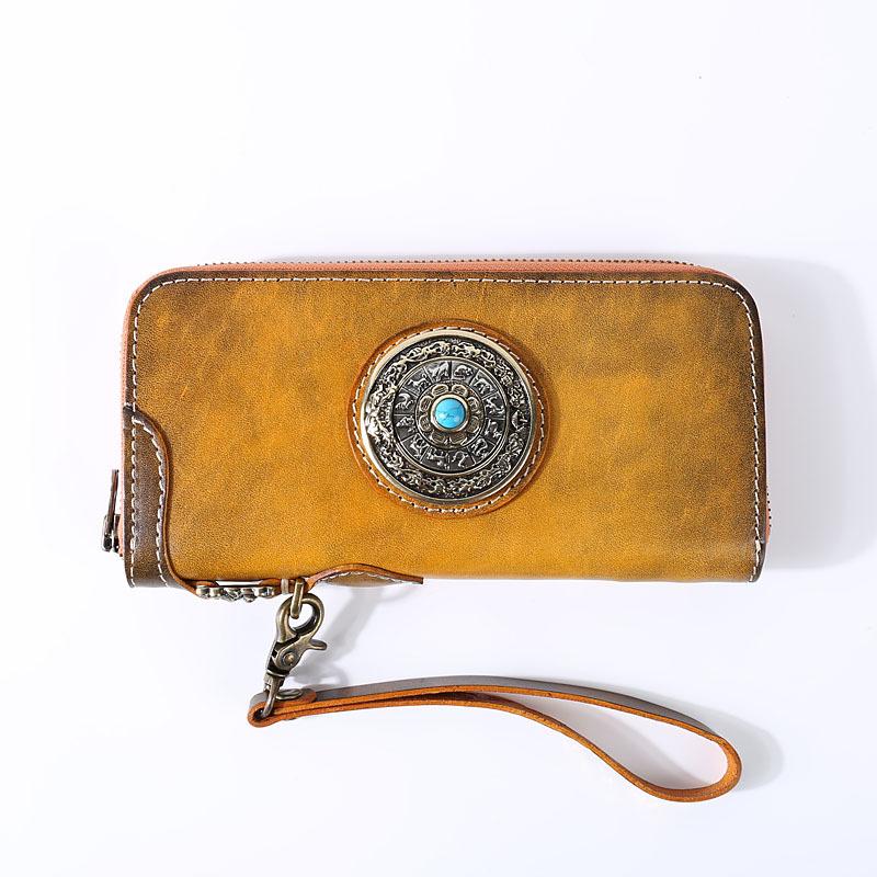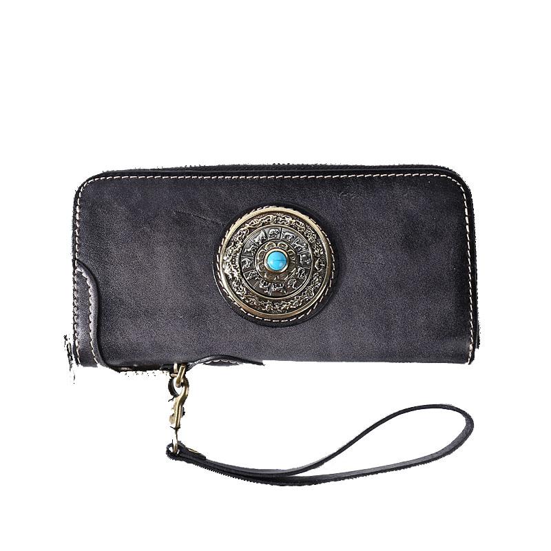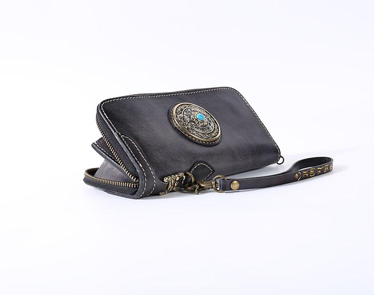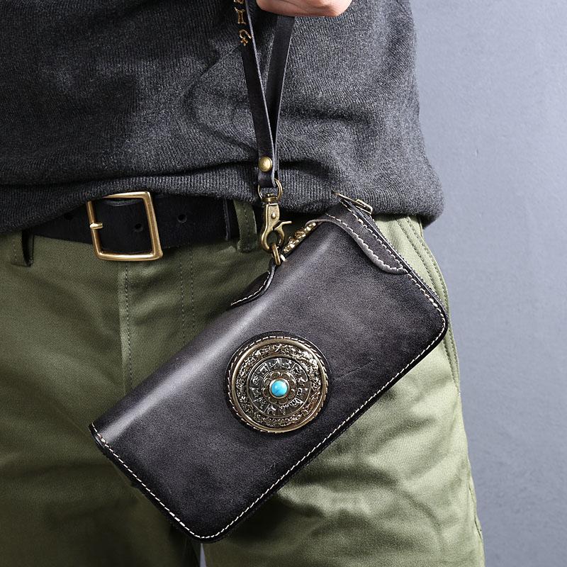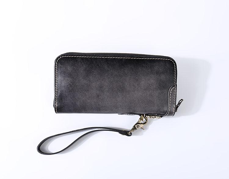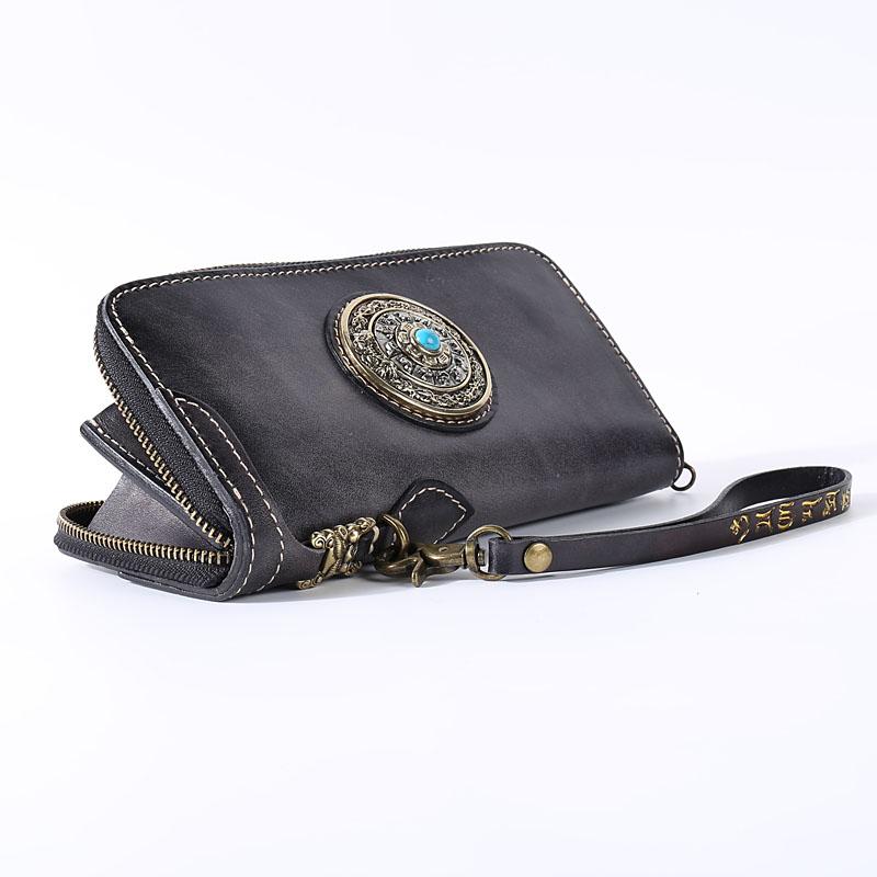 Design: Original Style Genuine Leather Mens Long Leather Phone Wallet Zipper Clutch Wallet for Men