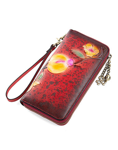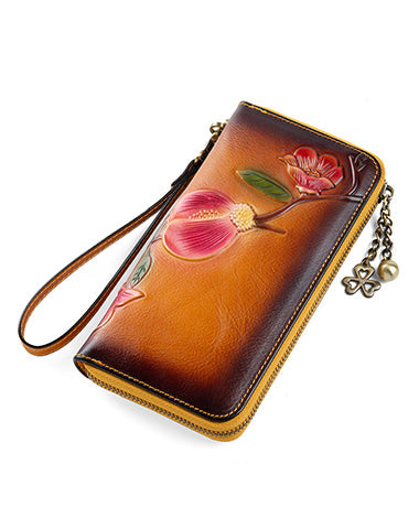 Plum Blossom Flower Leather Wristlet Wallet Womens Zip Around Wallets Flower Ladies Zipper Clutch Wallets for Women
