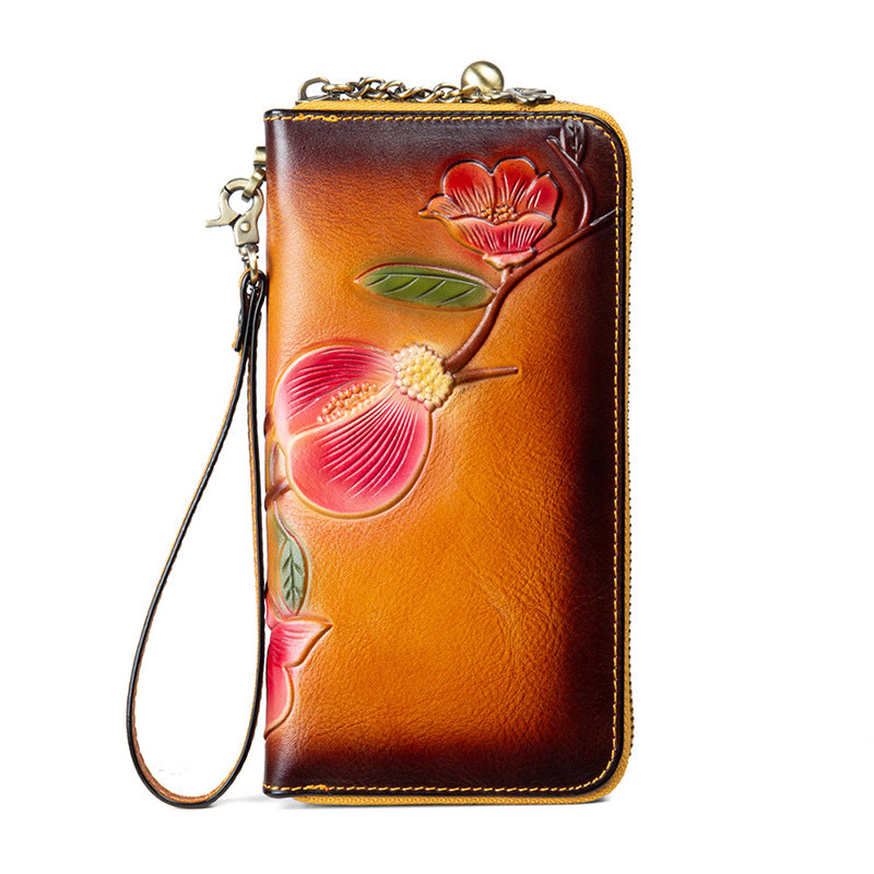 Design: Plum Blossom Flower Leather Wristlet Wallet Womens Zip Around Wallets Flower Ladies Zipper Clutch Wallets for Women