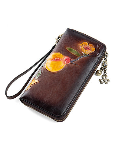 Plum Blossom Flower Red Leather Wristlet Wallet Womens Zip Around Wallets Flower Ladies Zipper Clutch Wallets for Women