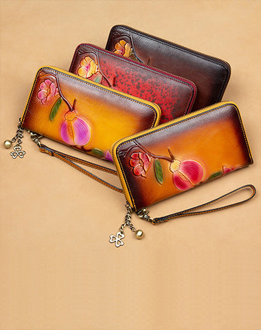 Design: Plum Blossom Flower Leather Wristlet Wallet Womens Zip Around Wallets Flower Ladies Zipper Clutch Wallets for Women