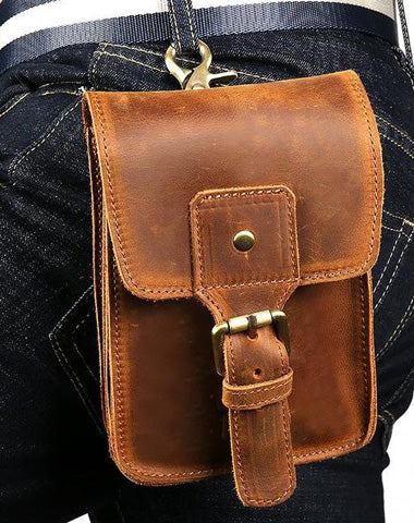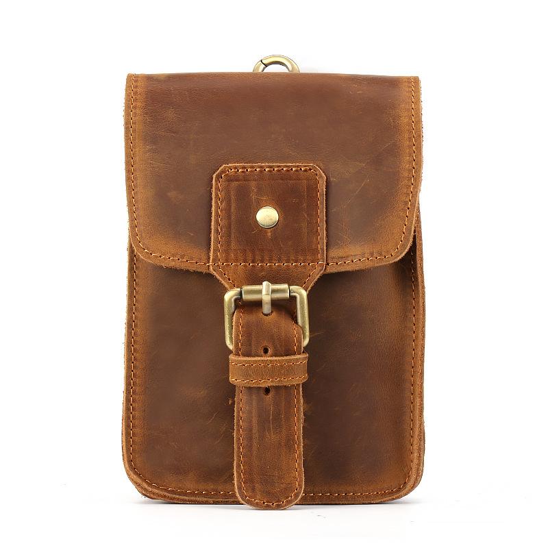 Design: Vintage Brown Leather Men's Belt Pouch Cell Phone Holster Belt Bag For Men