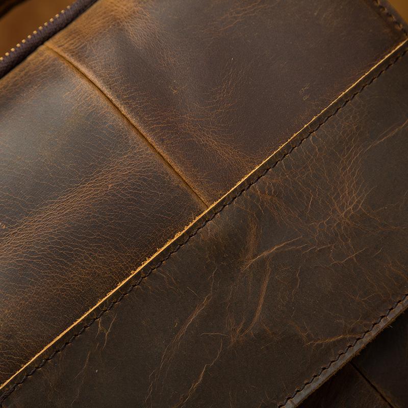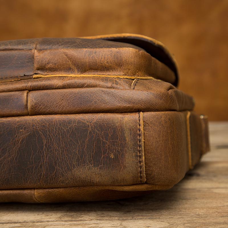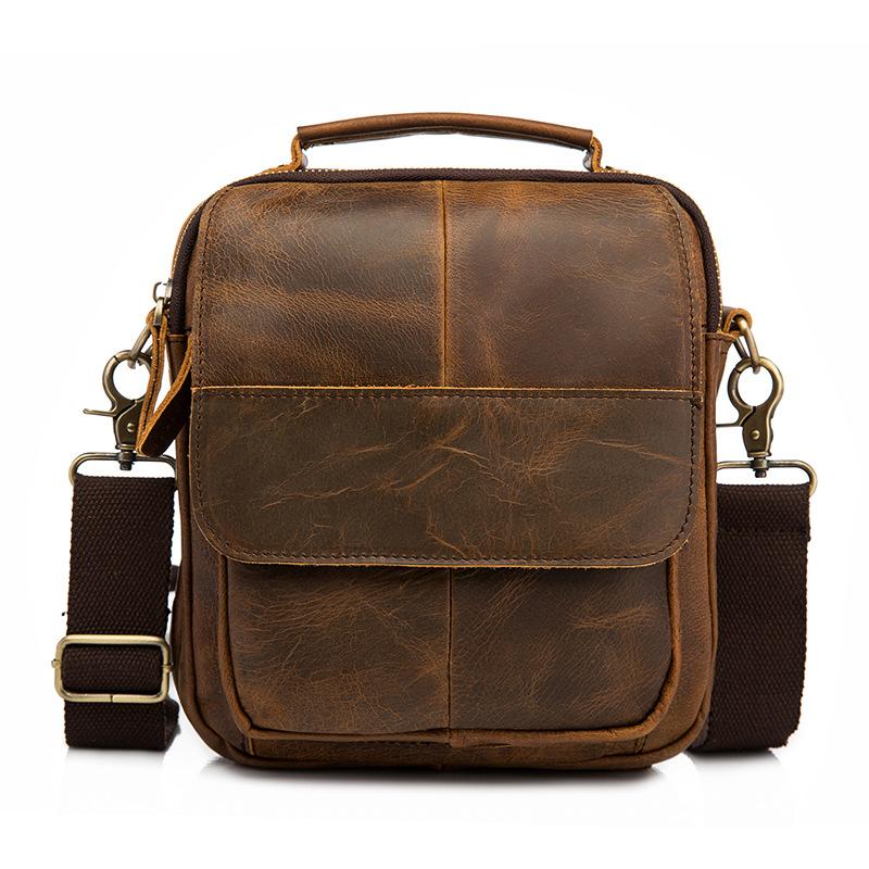 Design: Vintage Brown Leather Mens Small Vertical Side Bags Shoulder Bags Messenger Bag For Men