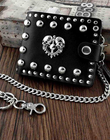 Design: Punk Black Leather Men's Small Biker Wallet Chain Wallet billfold Wallet with Chain For Men