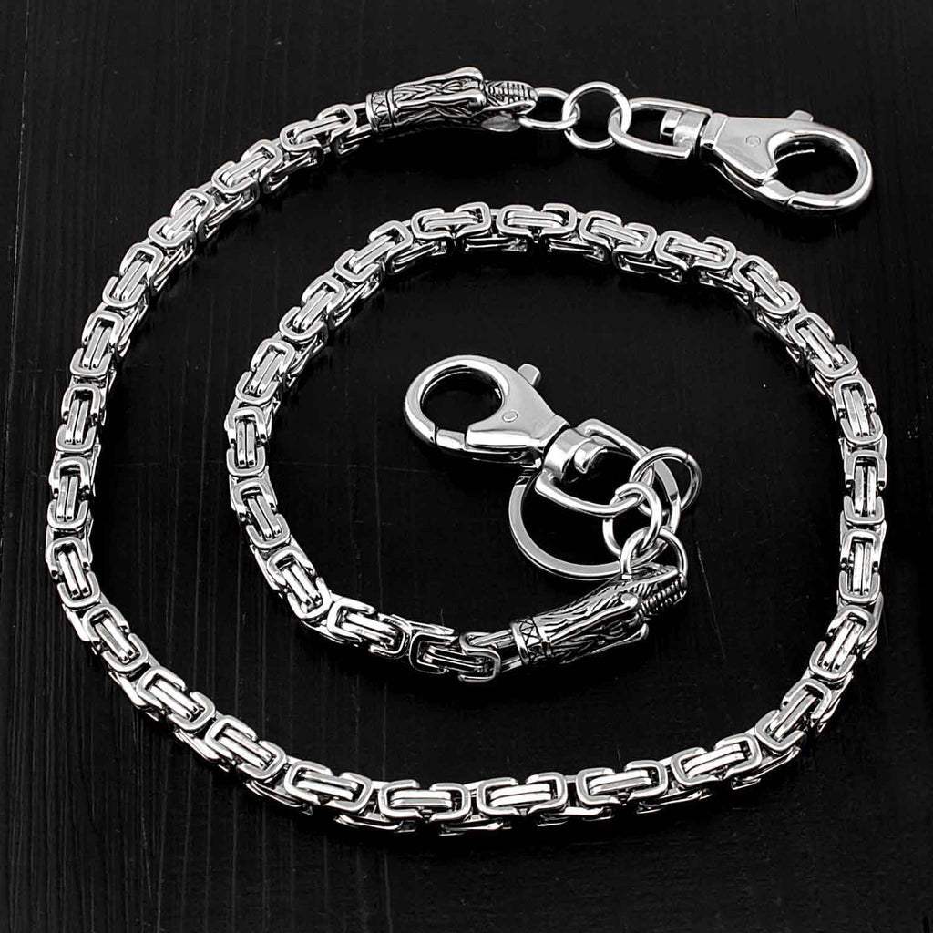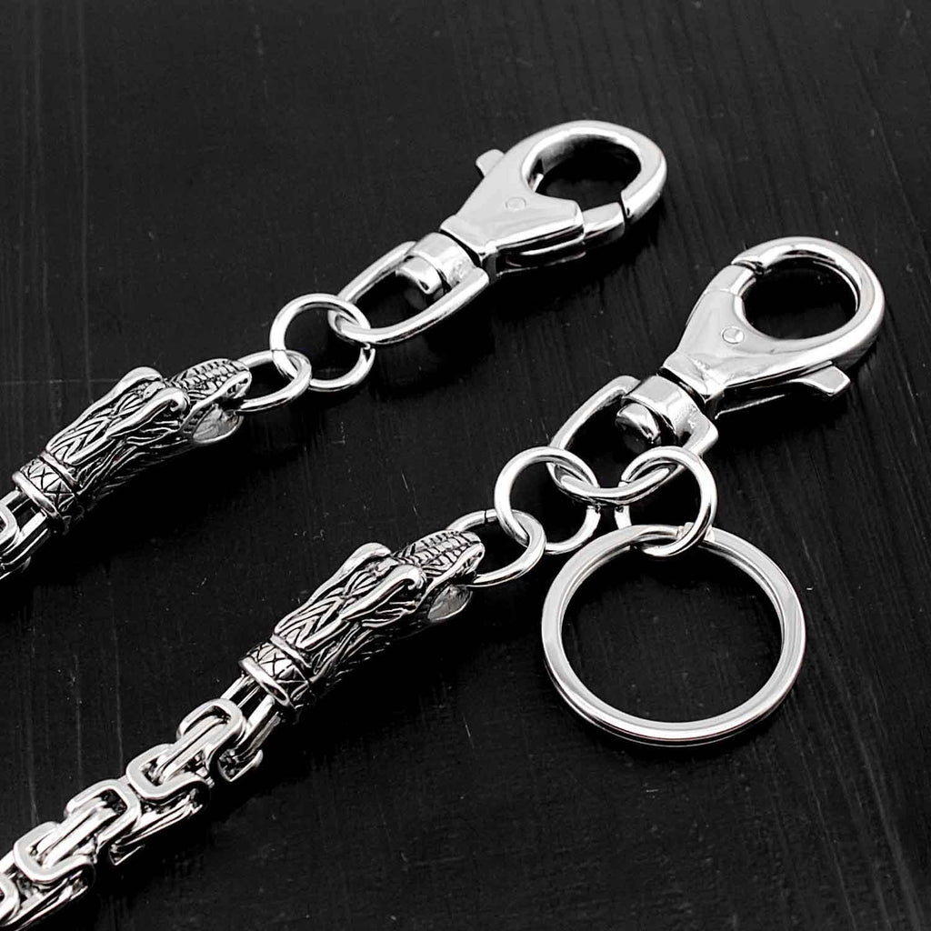 Style: Badass Dragon Silver Long Biker Chain Wallet STAINLESS STEEL Pants Chain Wallet Chain For Men