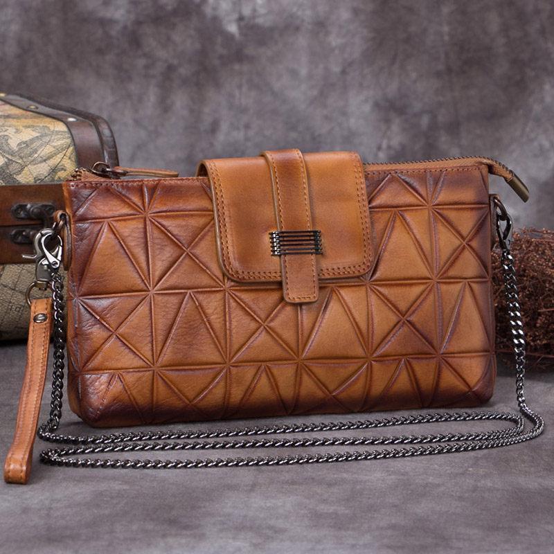 Purple Leather Geometric Womens VIntage Chain Shoulder Bag Side Bag Red Chain Clutch Purse for Ladies