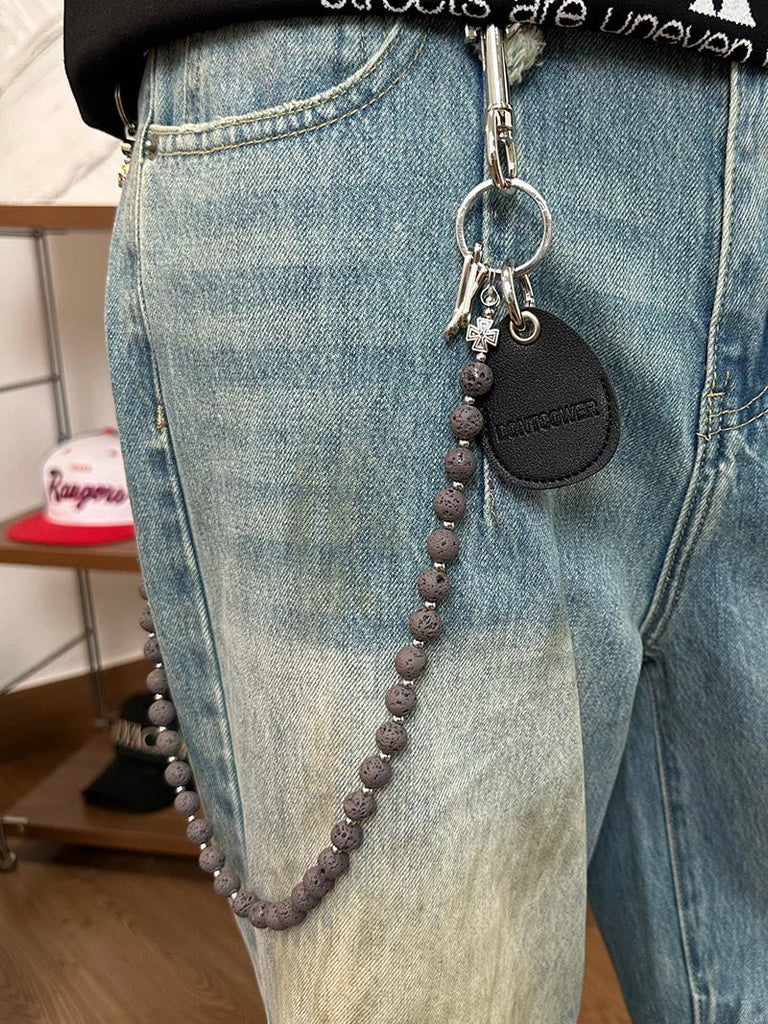 Whether you choose a bold hue for maximum impact or a subtle tone for daily wear, this beaded Wallet Chain adapts to your style while providing practical key management. The natural lavastone construction ensures durability and unique character, with each bead displaying subtle natural variations.