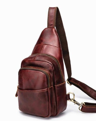 Design: Red Brown Cool LEATHER MENS 8 inches Sling Bag One Shoulder Backpack Brown Chest Bag For Men