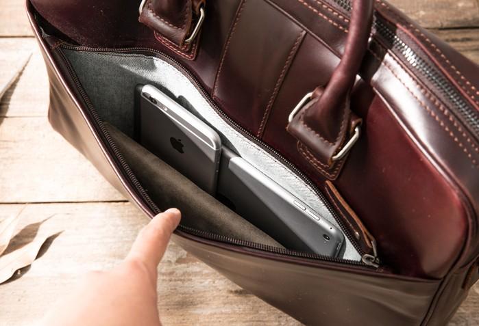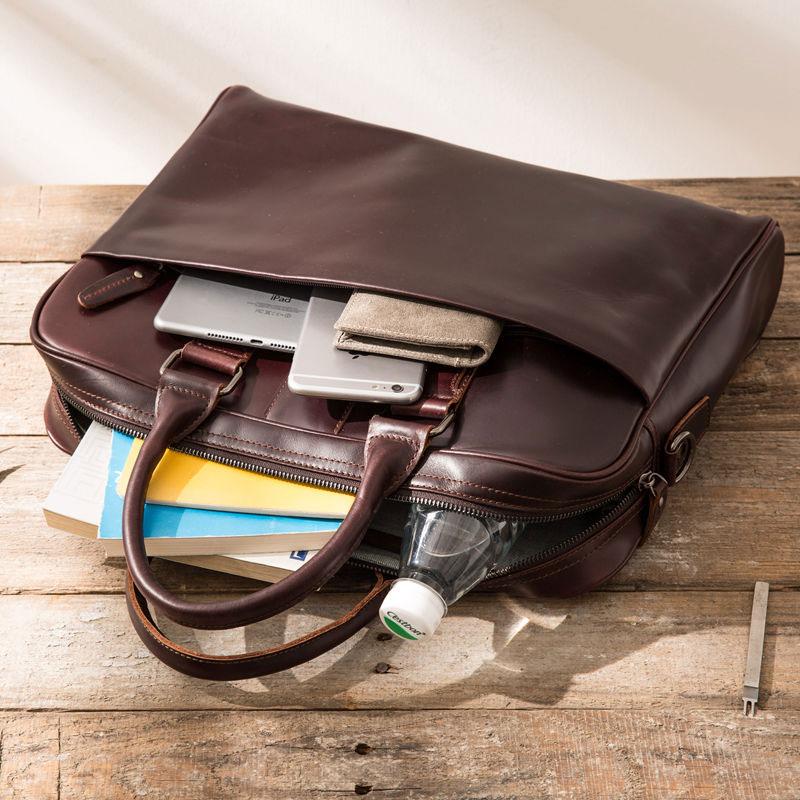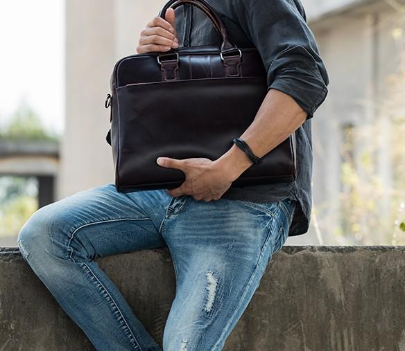 Design: Red Brown Leather Mens Briefcase Work Bag Laptop Bag Business Bag for Men