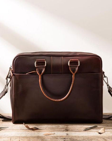 Style: Red Brown Leather Mens Briefcase Work Bag Laptop Bag Business Bag for Men