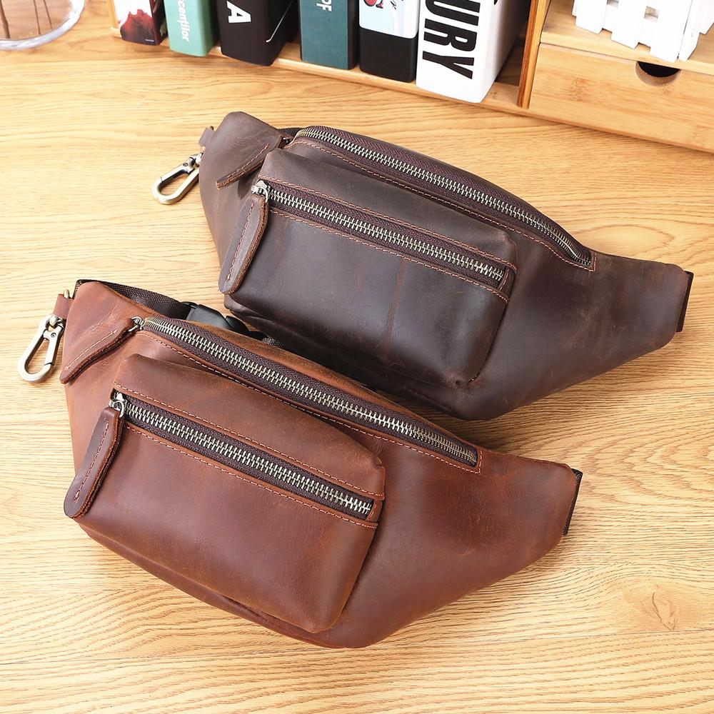 Style: Brown MENS LEATHER FANNY PACK BUMBAG Hip Pack Brown Leather WAIST BAGS for Men
