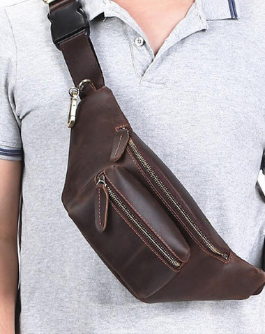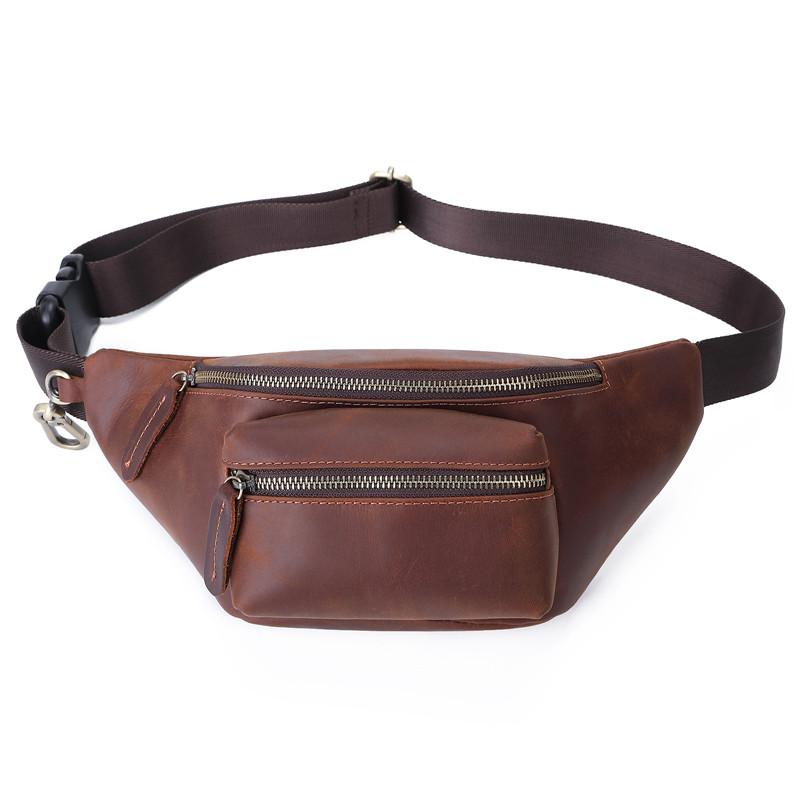 Design: Brown MENS LEATHER FANNY PACK BUMBAG Hip Pack Brown Leather WAIST BAGS for Men