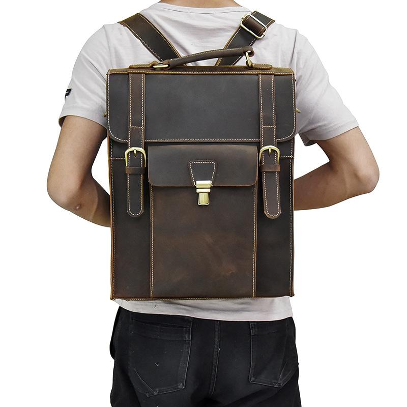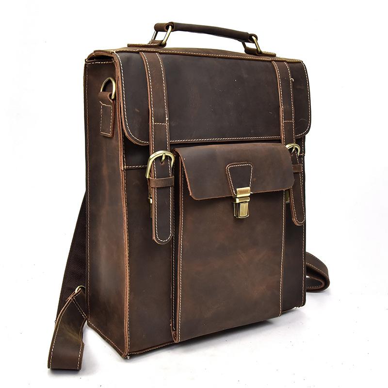 Design: Cool Leather Mens Briefcase Handbag Backpack Satchel Backpack Travel Backpack for Men