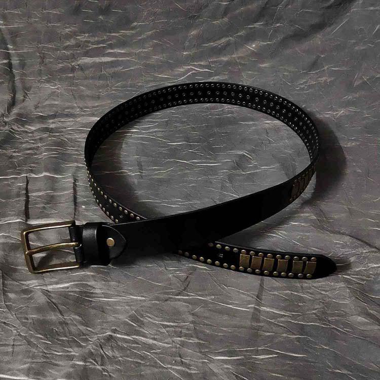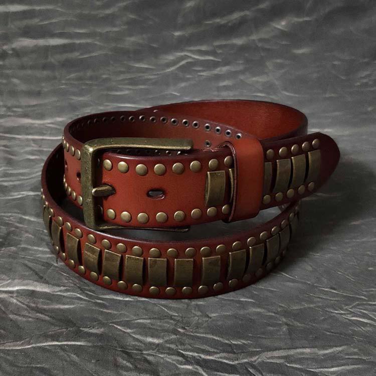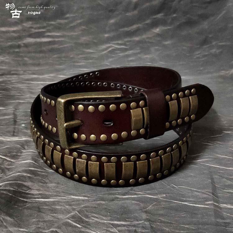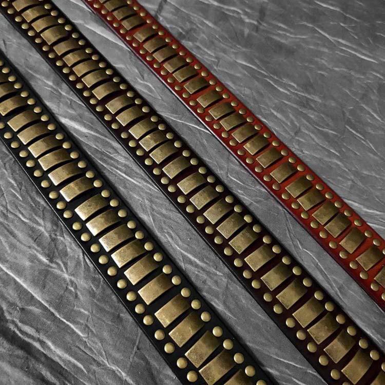 Style: Retro Black Fashion Leather Metal Belt Brown Motorcycle Belt Leather Round Belt For Men