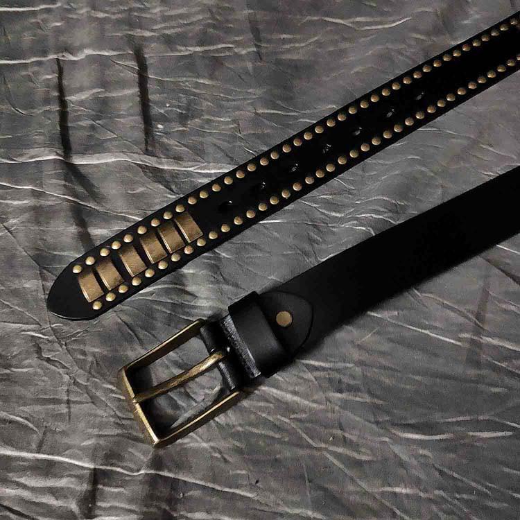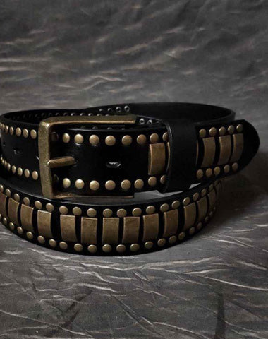 Design: Retro Black Fashion Leather Metal Belt Brown Motorcycle Belt Leather Round Belt For Men