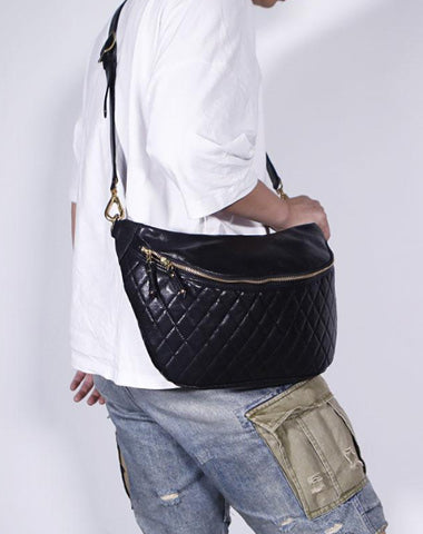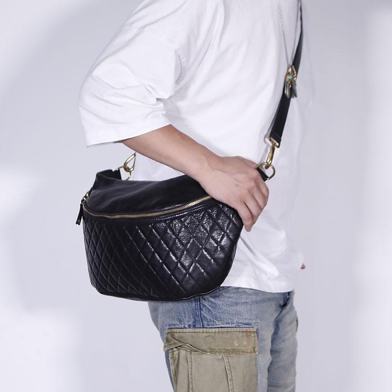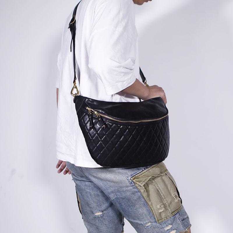 Design: RETRO BLACK LEATHER MEN'S 12 INCHES SLING BAG ONE SHOULDER MESSENGER BAG CHEST BAG DIAGONAL BAG FOR MEN