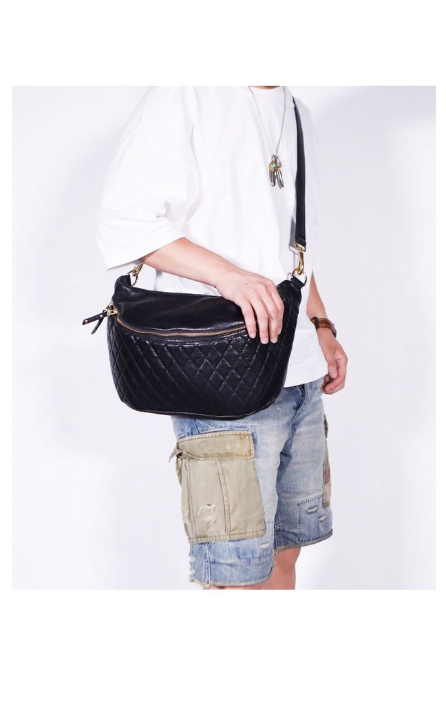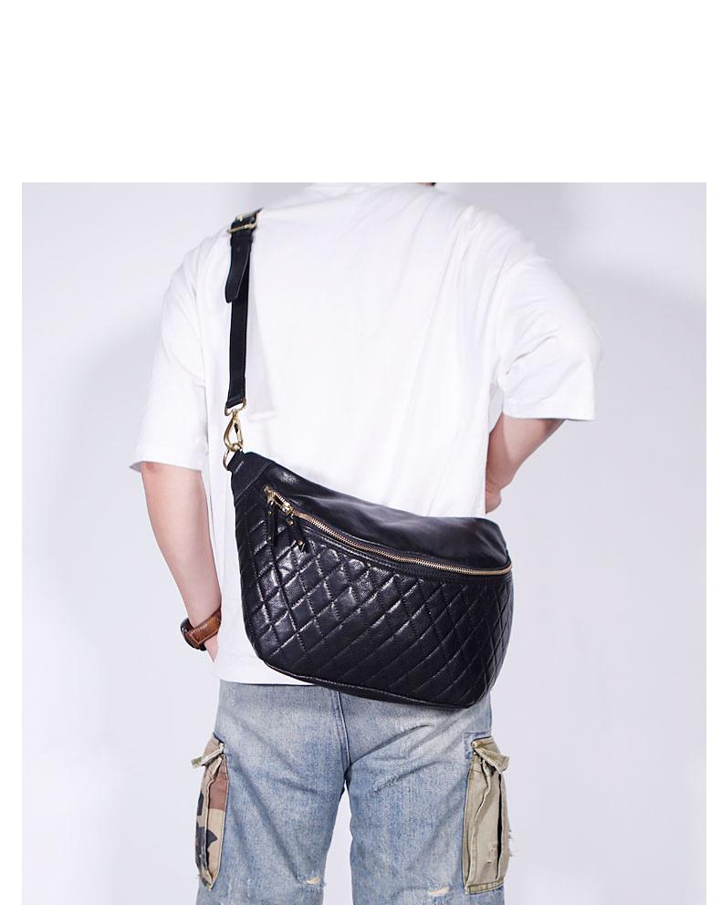 Design: RETRO BLACK LEATHER MEN'S 12 INCHES SLING BAG ONE SHOULDER MESSENGER BAG CHEST BAG DIAGONAL BAG FOR MENOverview: