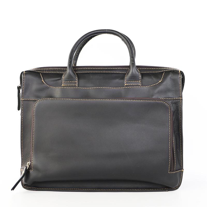 Vintage Black Mens Leather Briefcases Work Handbag Black 14'' Computer Briefcases For Men
