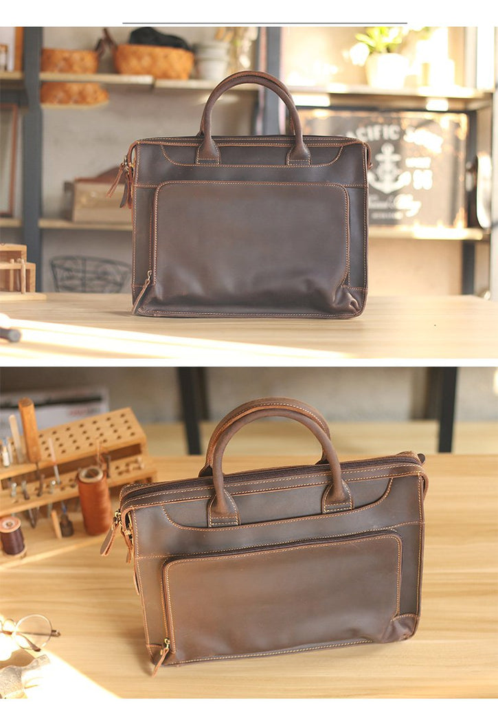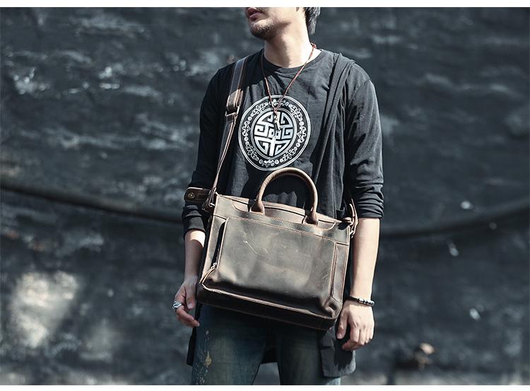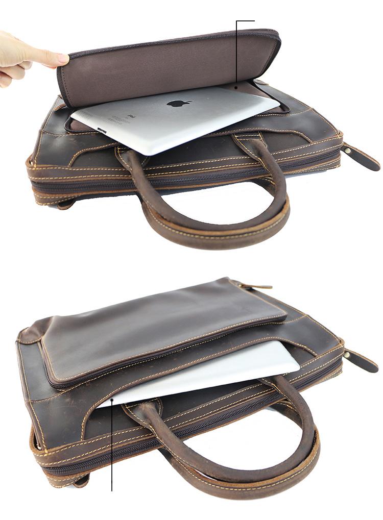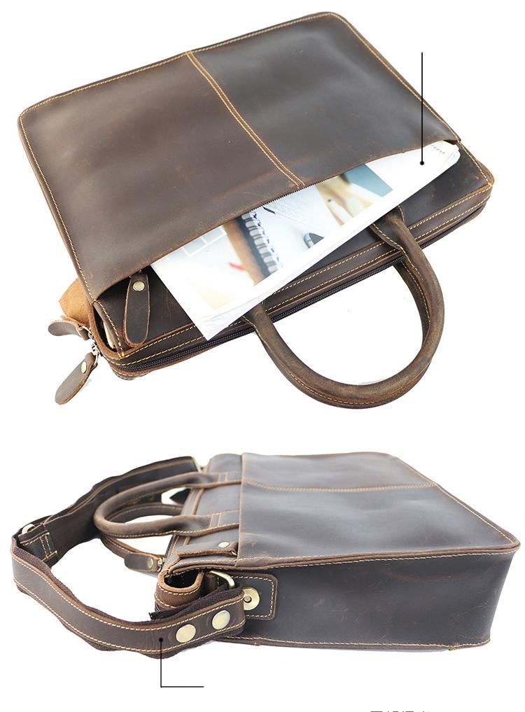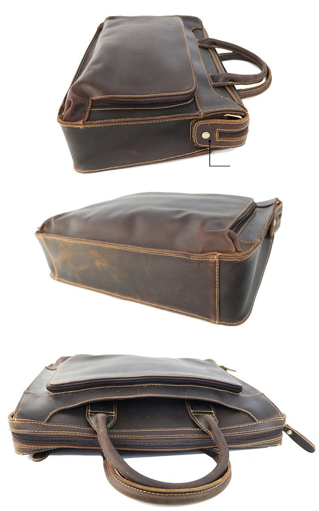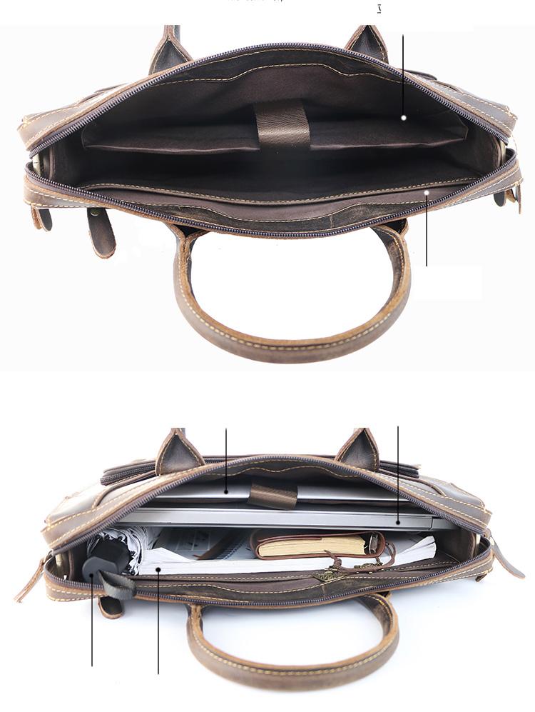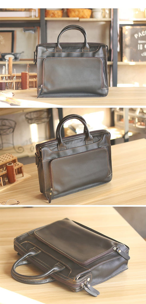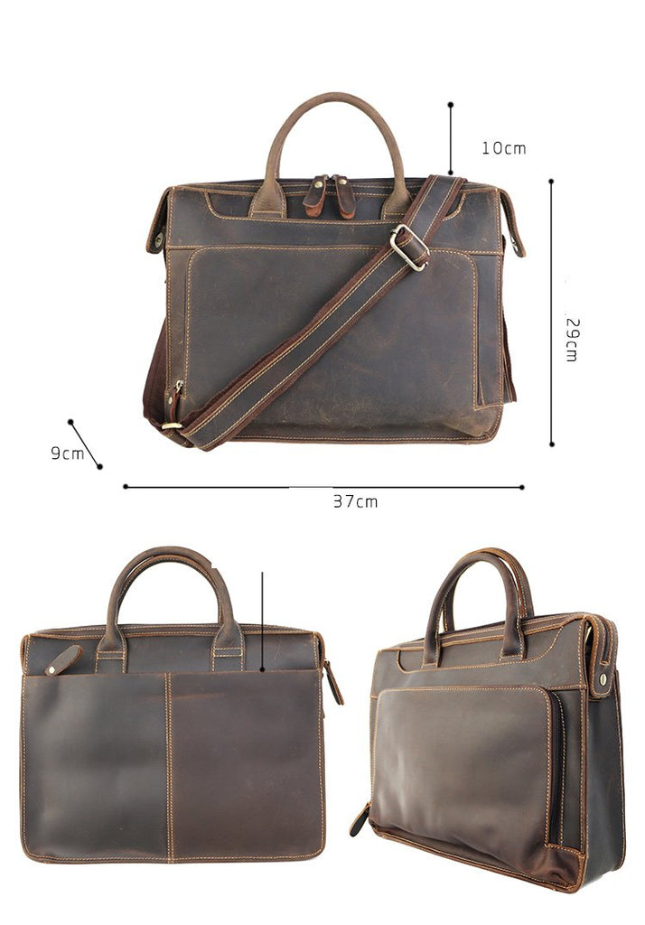 Style: Retro Black Mens Leather Briefcase Work Handbag Black 14'' Computer Briefcases For Men