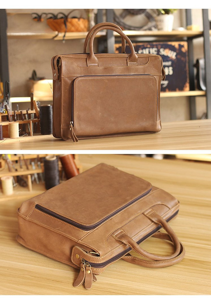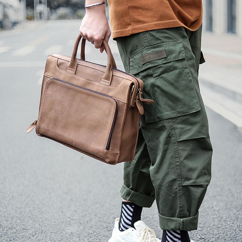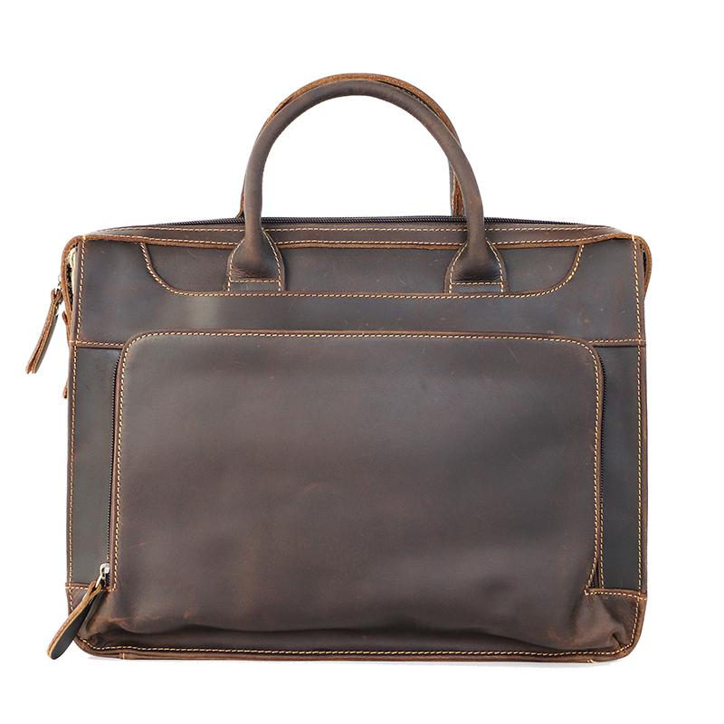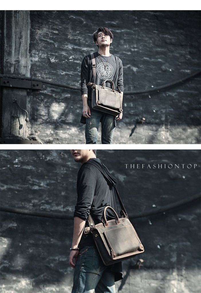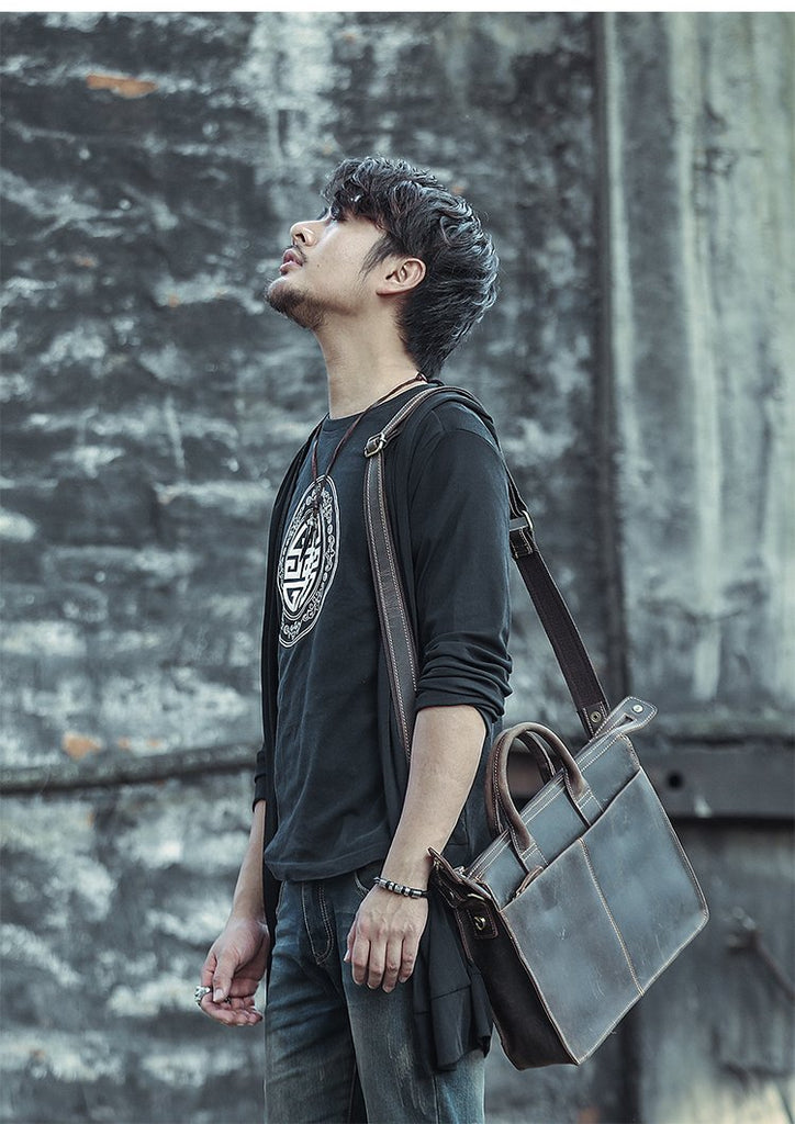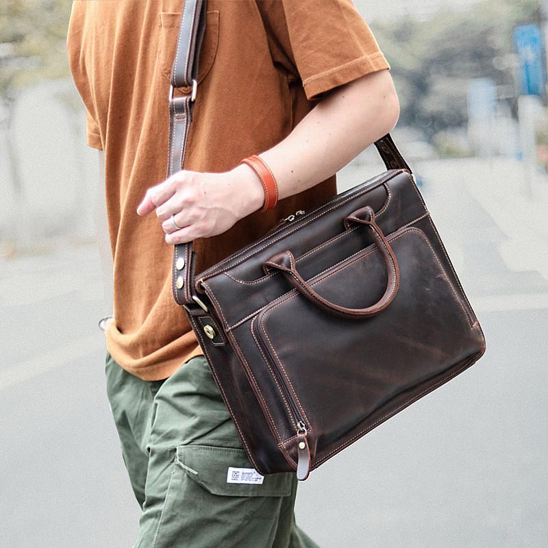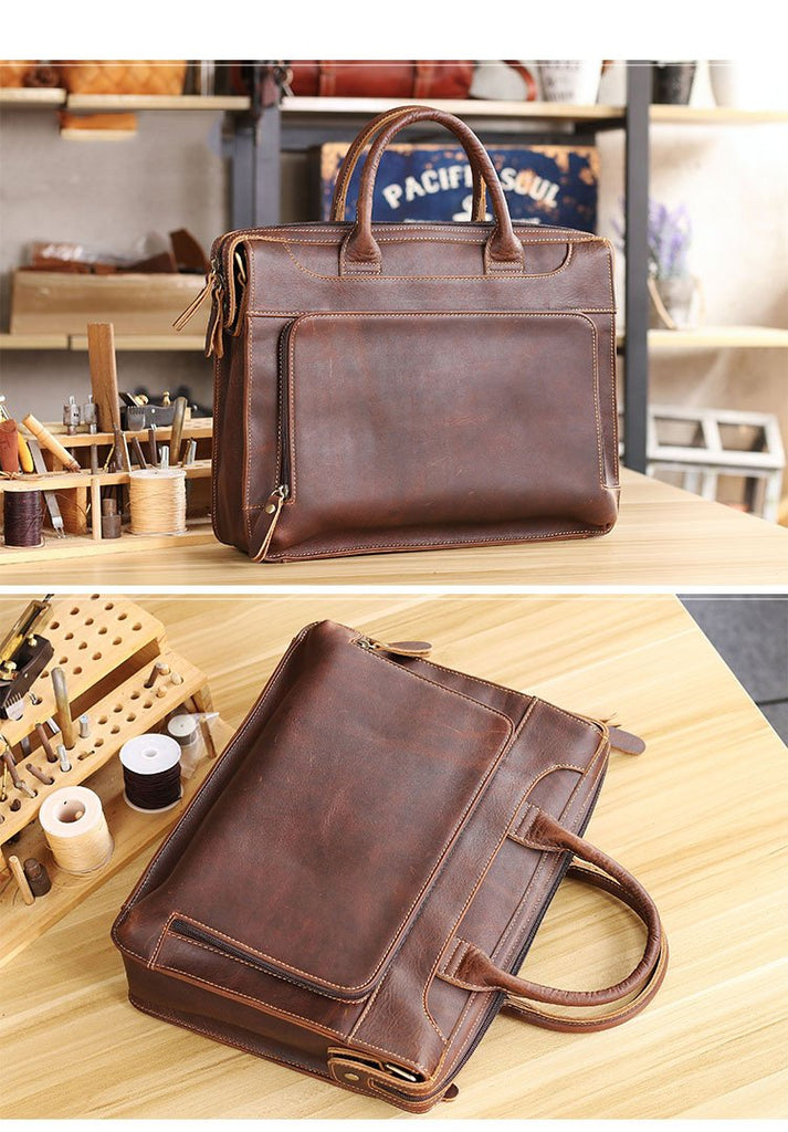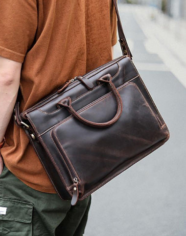 Style: Retro Black Mens Leather Briefcase Work Handbag Black 14'' Computer Briefcases For Men