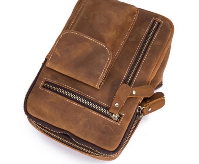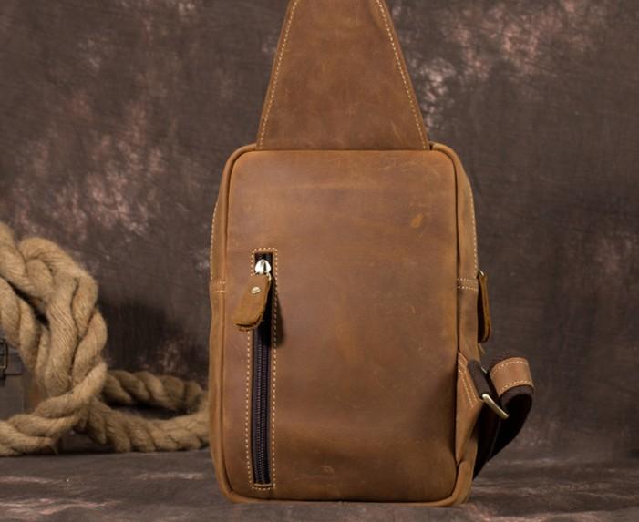 Style: Genuine Leather Cool Chest Bag Sling Bag Crossbody Bag Travel Bag Hiking Bag For Mens