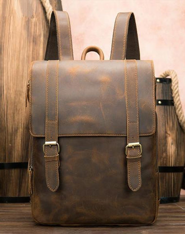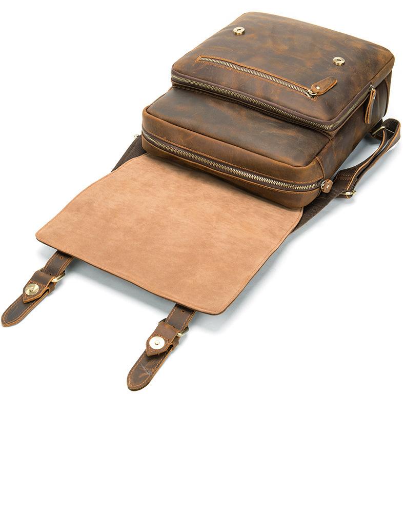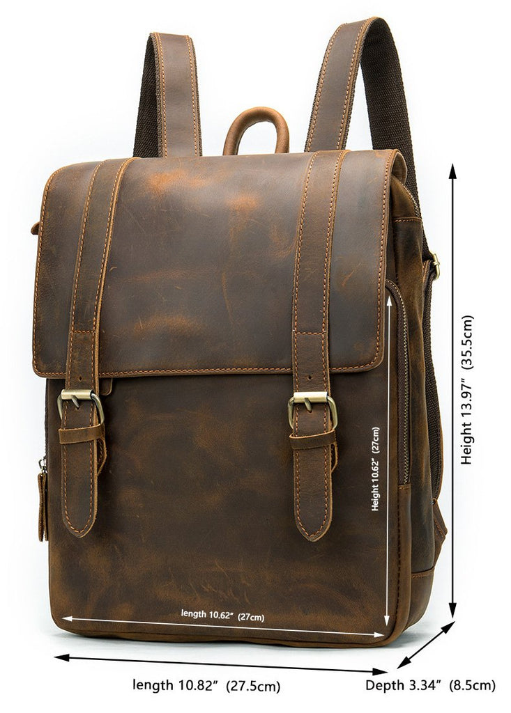 Design: Vintage Brown Leather Men's 14inch Laptop Backpack College Backpack For MenOverview: