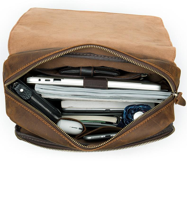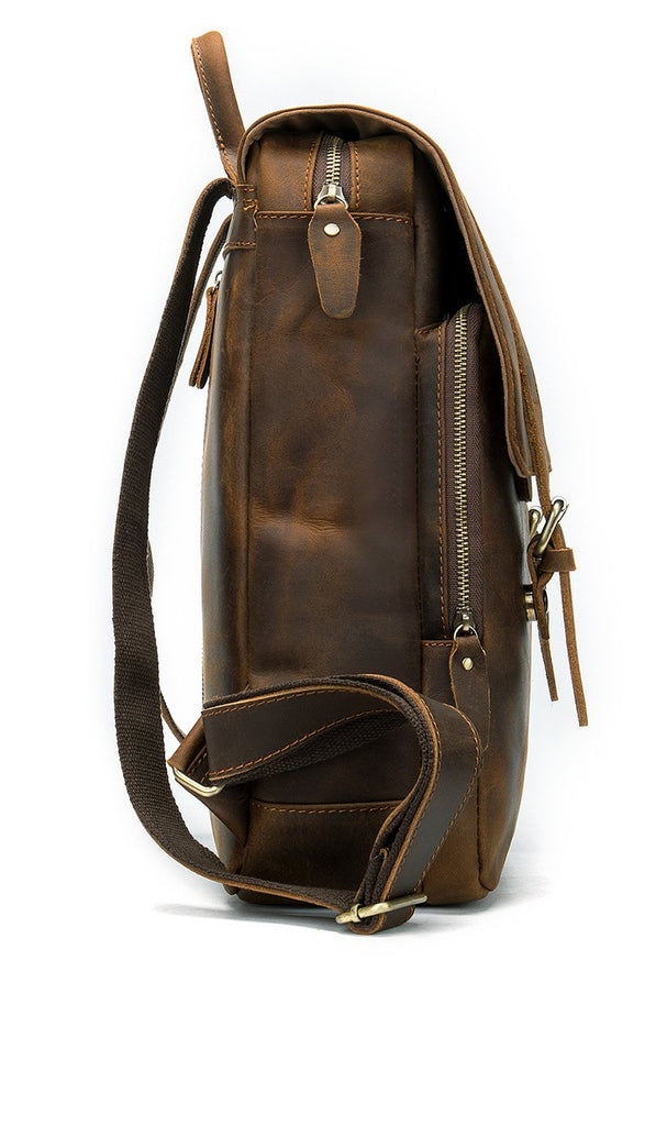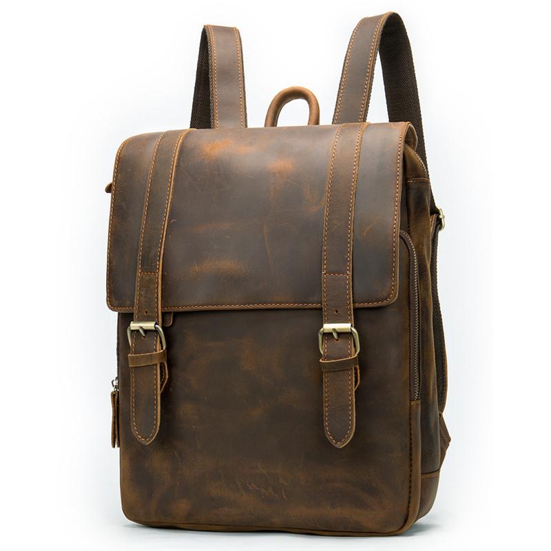Design: Vintage Brown Leather Men's 14inch Laptop Backpack College Backpack For Men