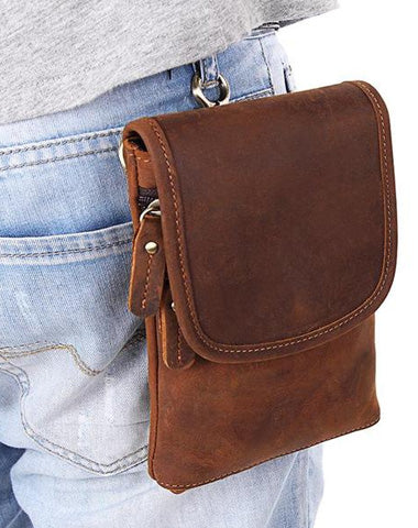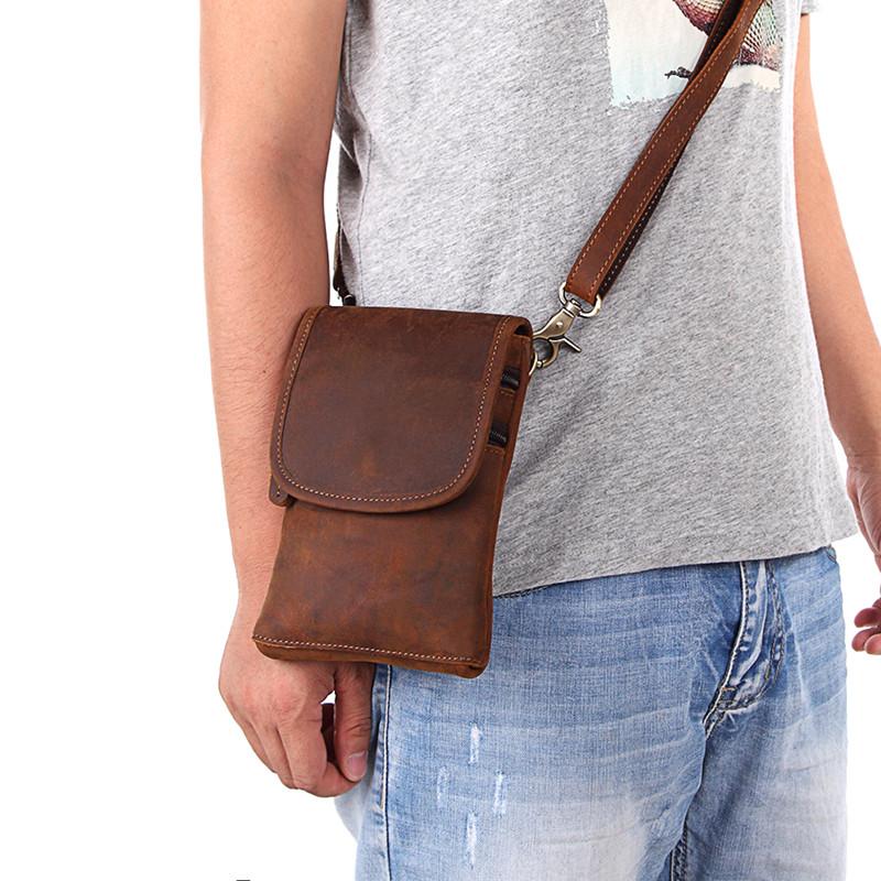 Style: Cool Brown Leather Mens Mini Shoulder Bag Belt Pouch Belt Bags For Men