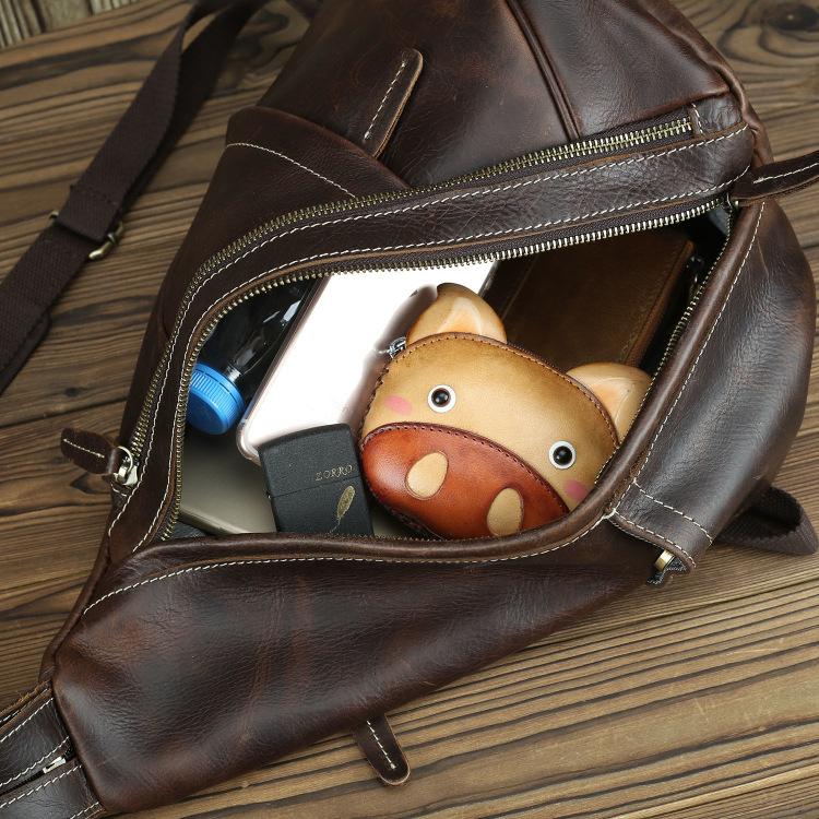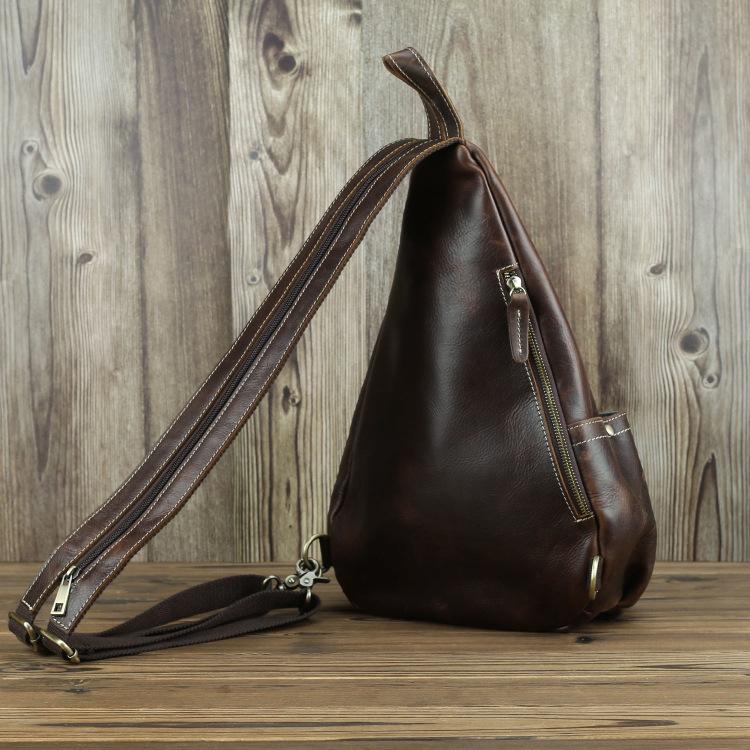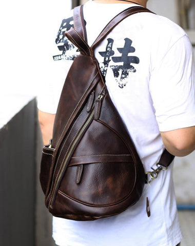 Design: Brown Leather Men's Sling Bag Chest Bag Vintage One shoulder Backpack For MenOverview: