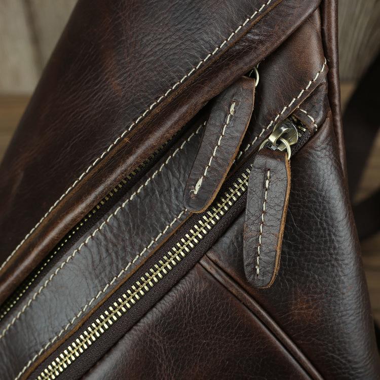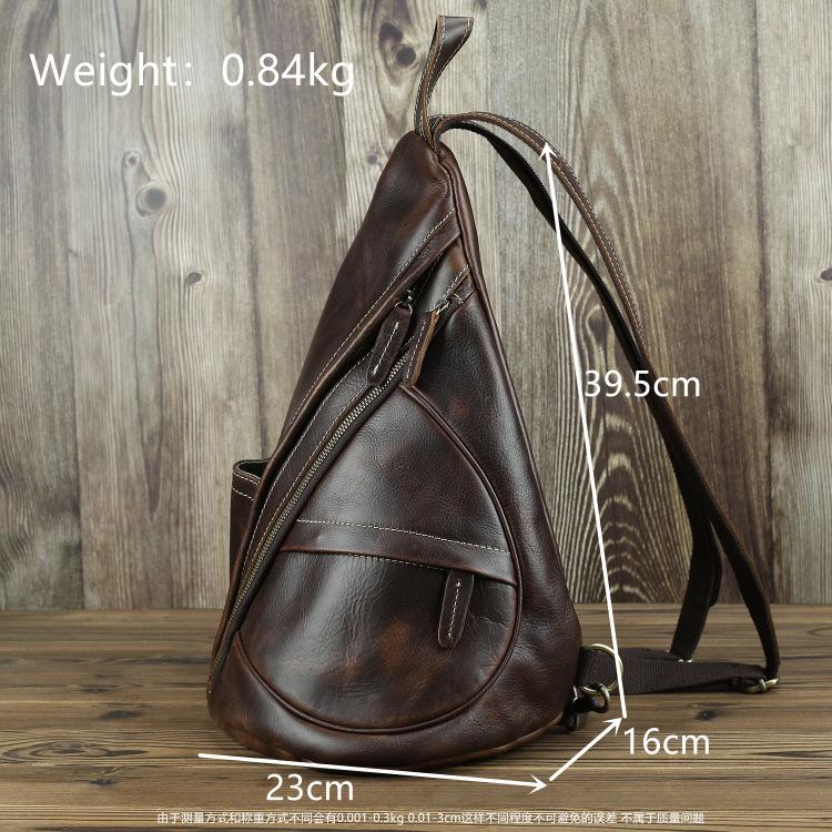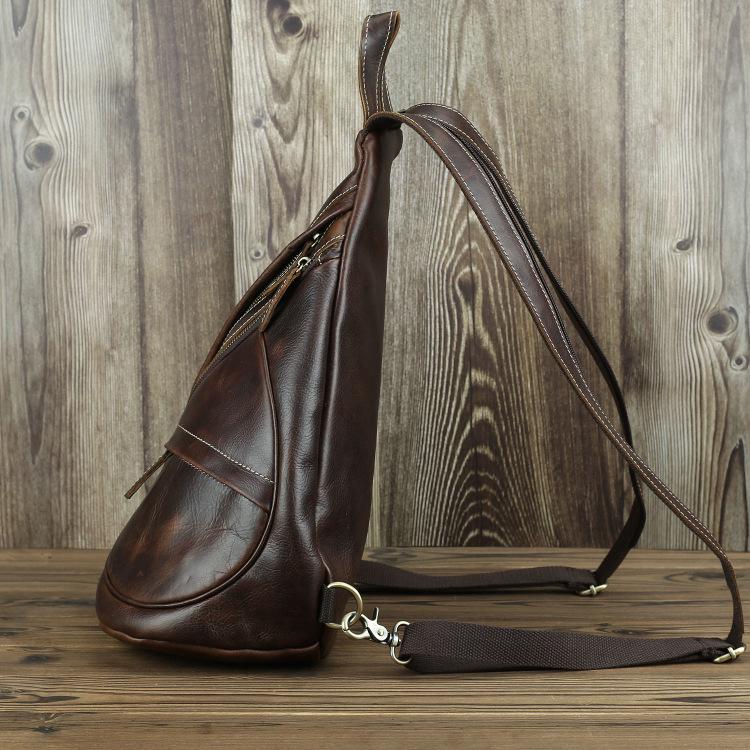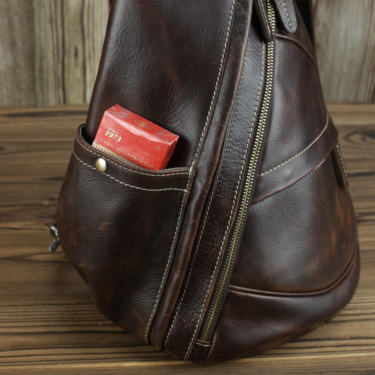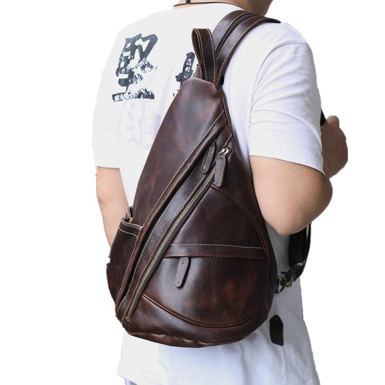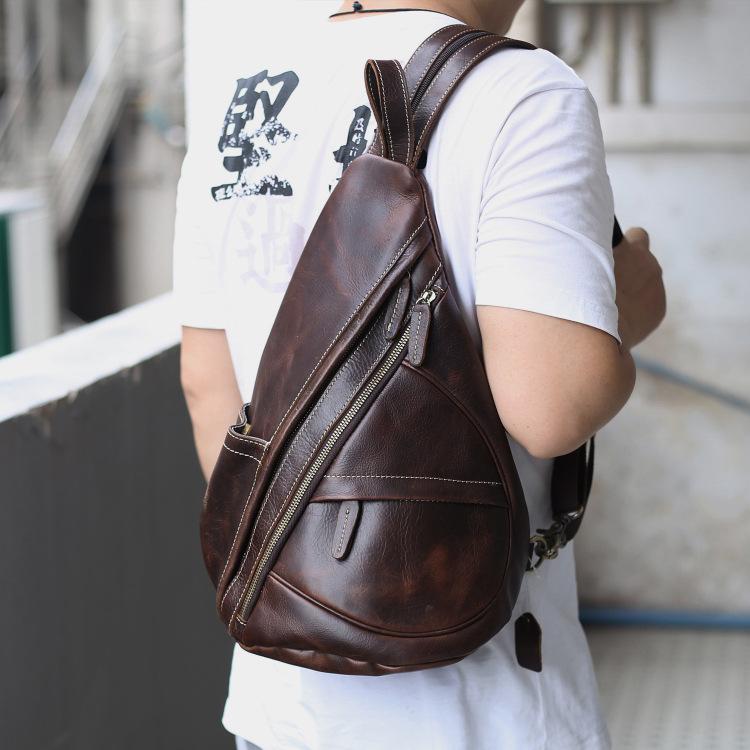 Design: Brown Leather Men's Sling Bag Chest Bag Vintage One shoulder Backpack For Men