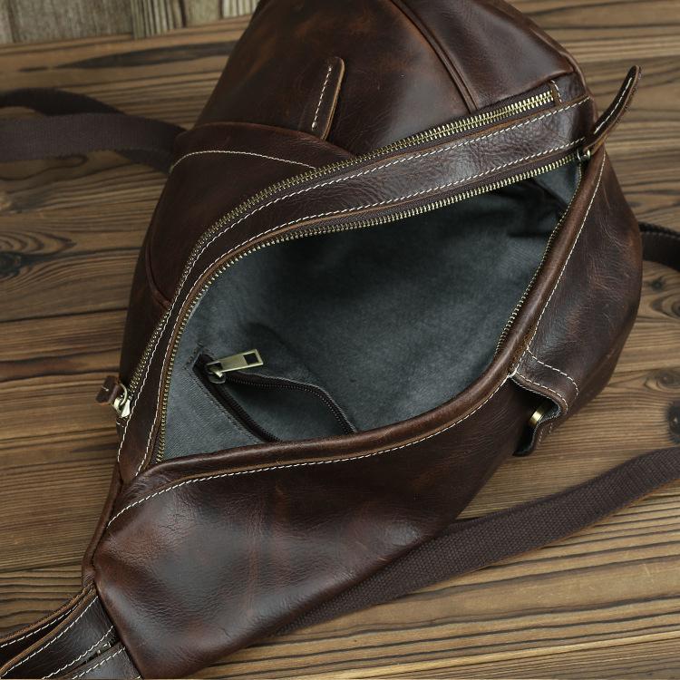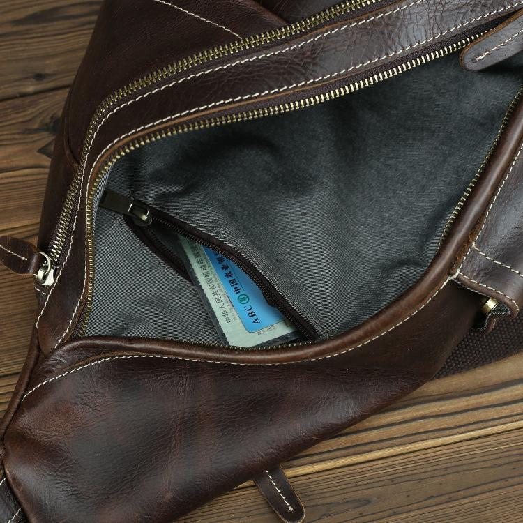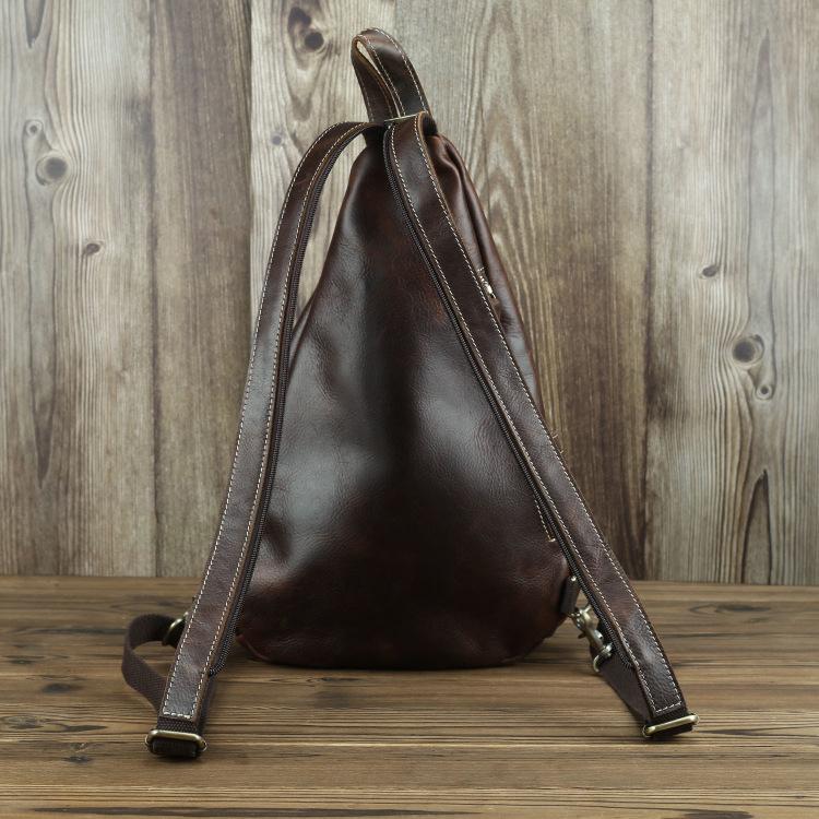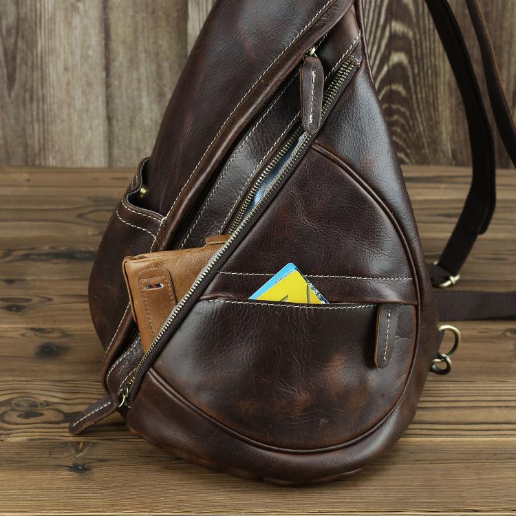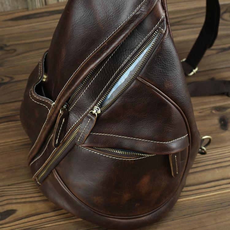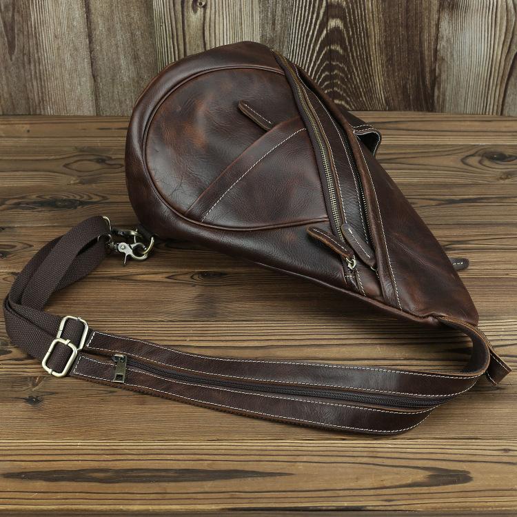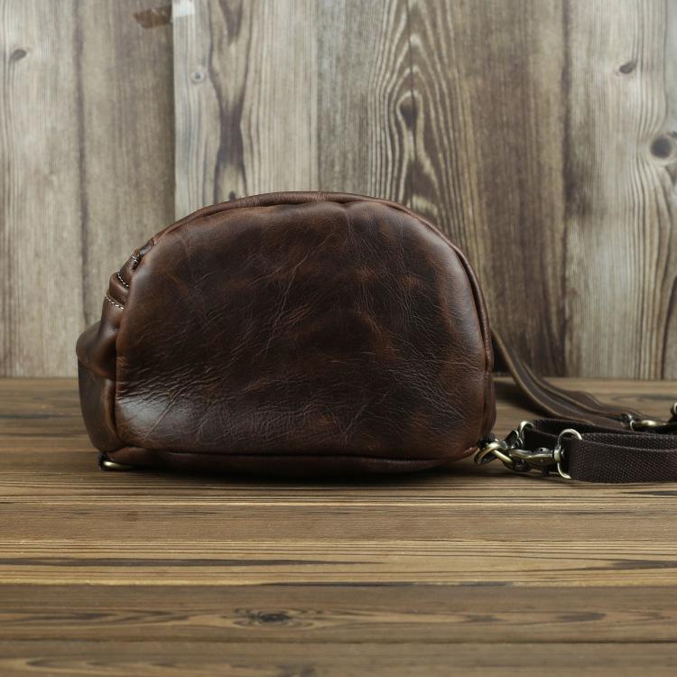 Design: Brown Leather Men's Sling Bag Chest Bag Vintage One shoulder Backpack For Men