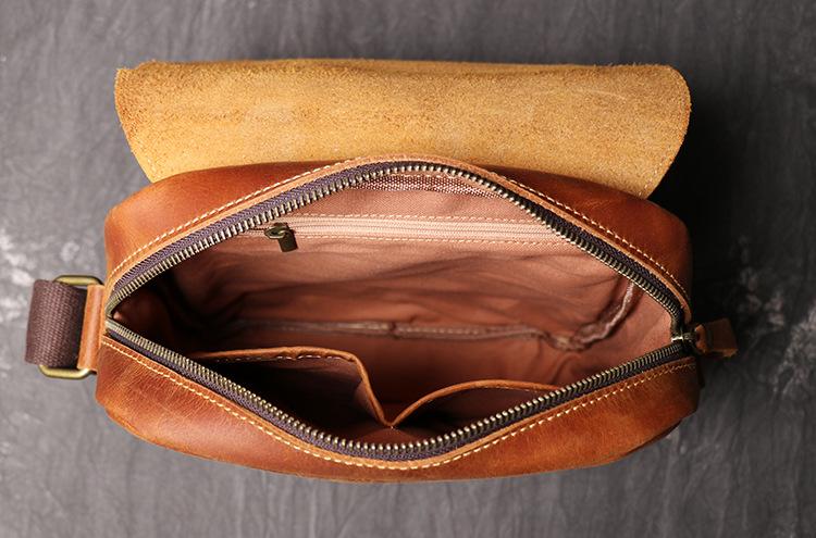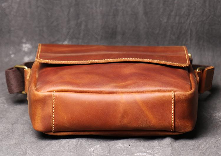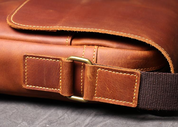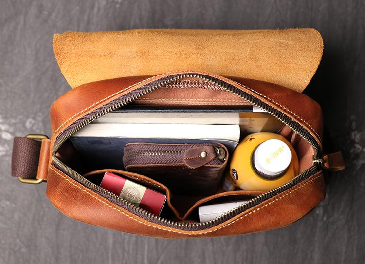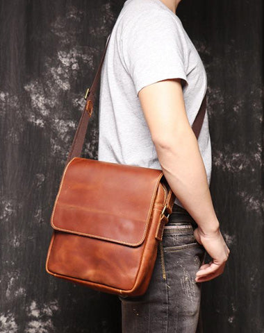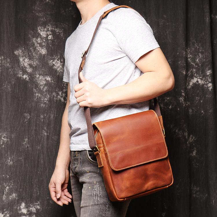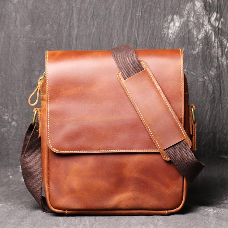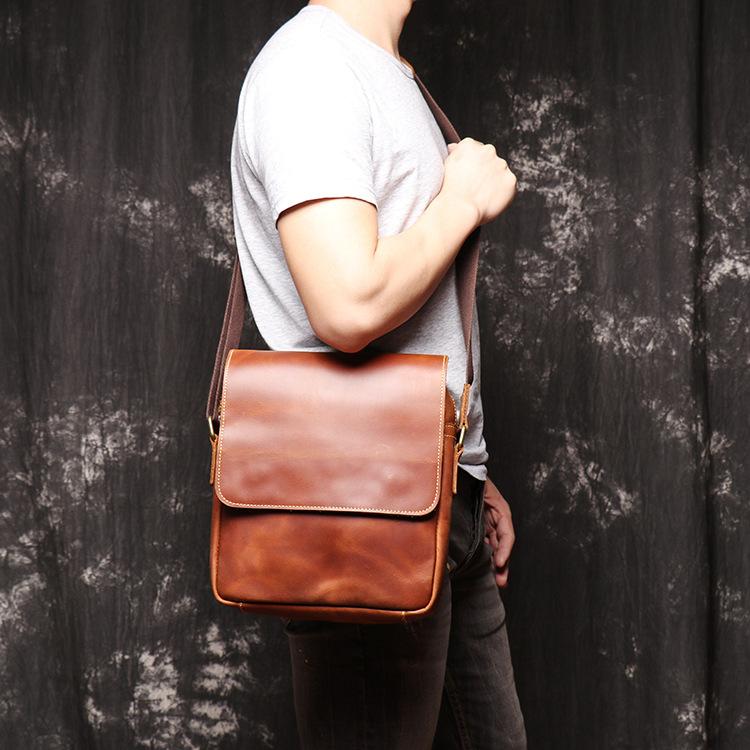 Design: Retro Brown Leather Men's Vertical Side Bag 10-inch Vertical Messenger Bag For Men