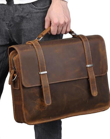 Design: Vintage Brown Leather Men's Professional Briefcase Handbag 14‘’ Laptop Briefcase For Men
