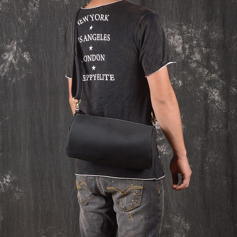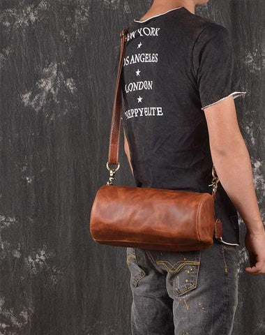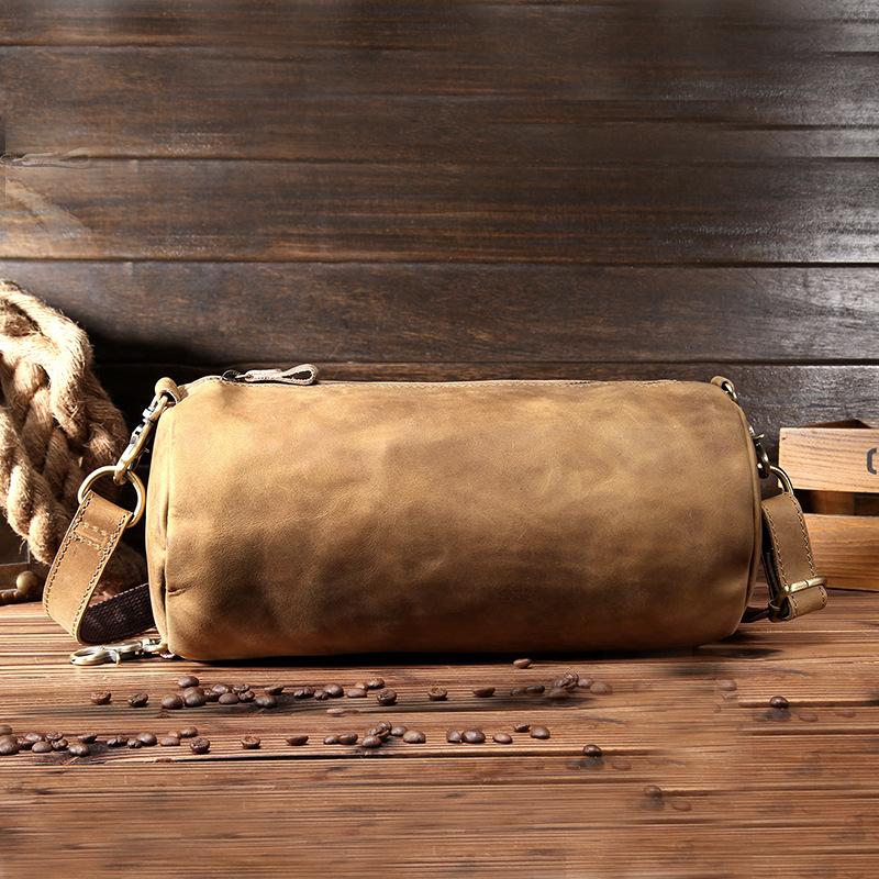 Design: Light Brown Leather Mens Barrel Shoulder Bag Side Bag Messenger Bag For MenOverview: