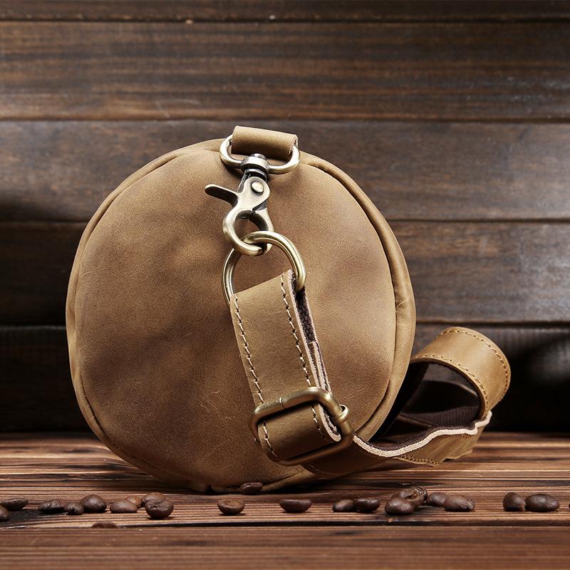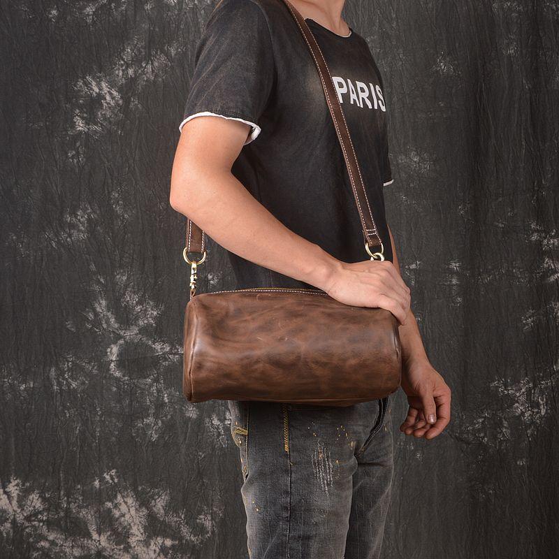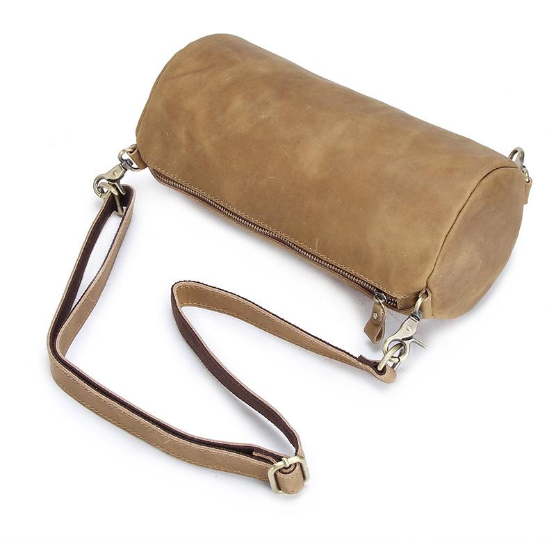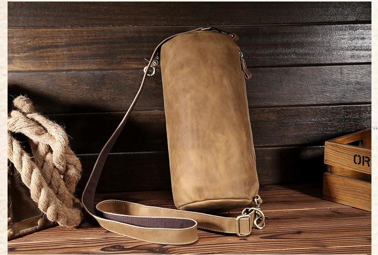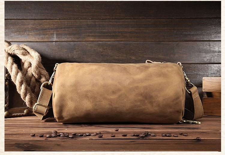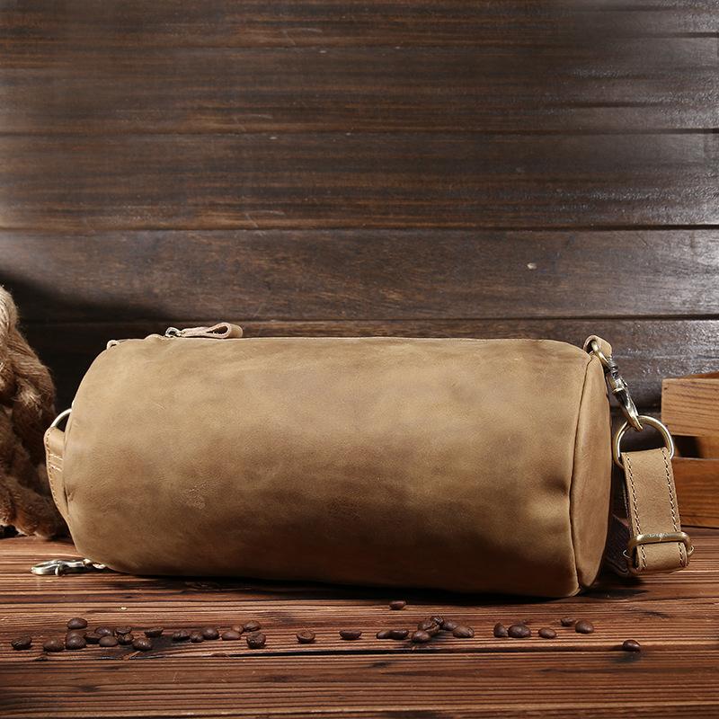 Design: Light Brown Leather Mens Barrel Shoulder Bag Side Bag Messenger Bag For Men