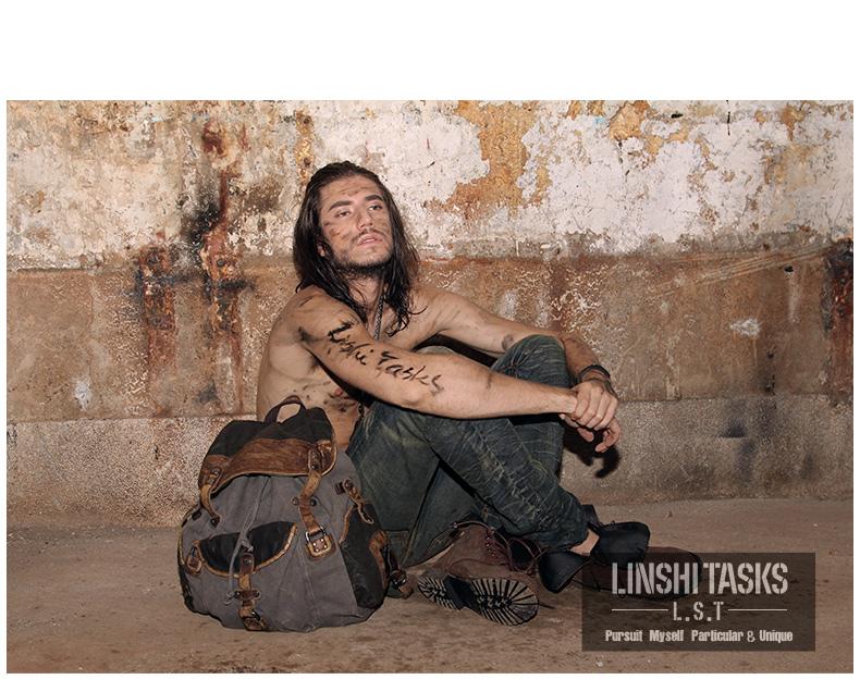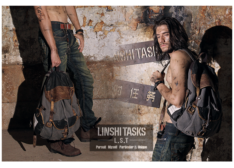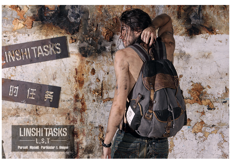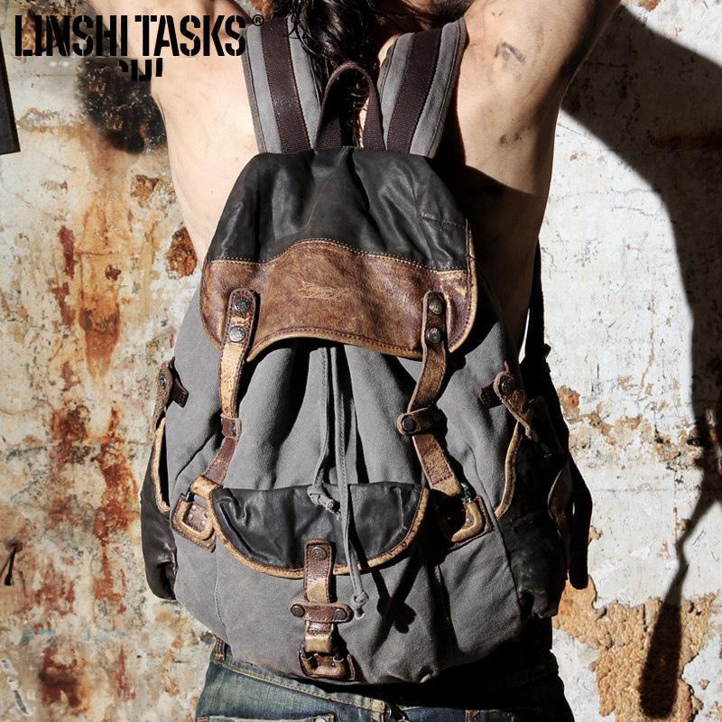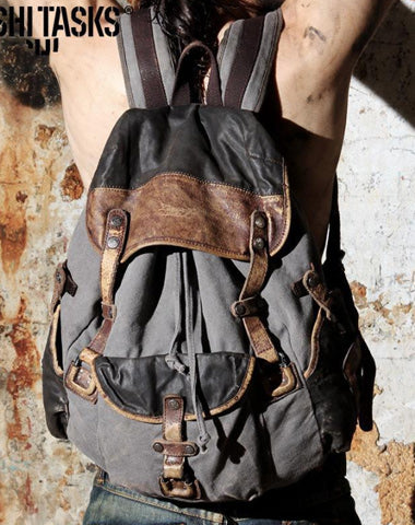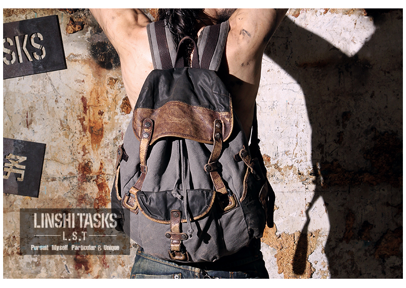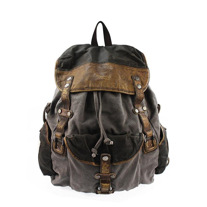 Design: Retro Canvas Leather Mens Large Washed Gray Backpack School Backpack Canvas Travel Backpack For Men