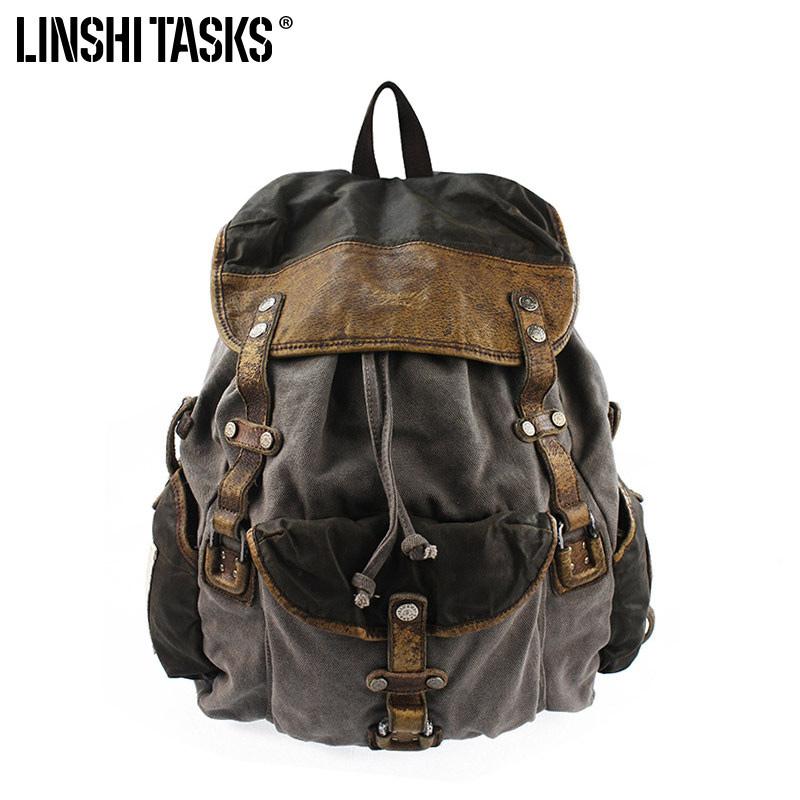 Style: Retro Canvas Leather Mens Large Washed Gray Backpack School Backpack Canvas Travel Backpack For Men