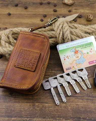 Design: Retro Dark Brown Leather Men's Large Key Wallet Key Case Car Car Key Holder For Men