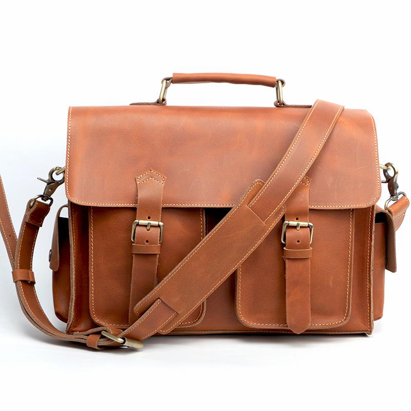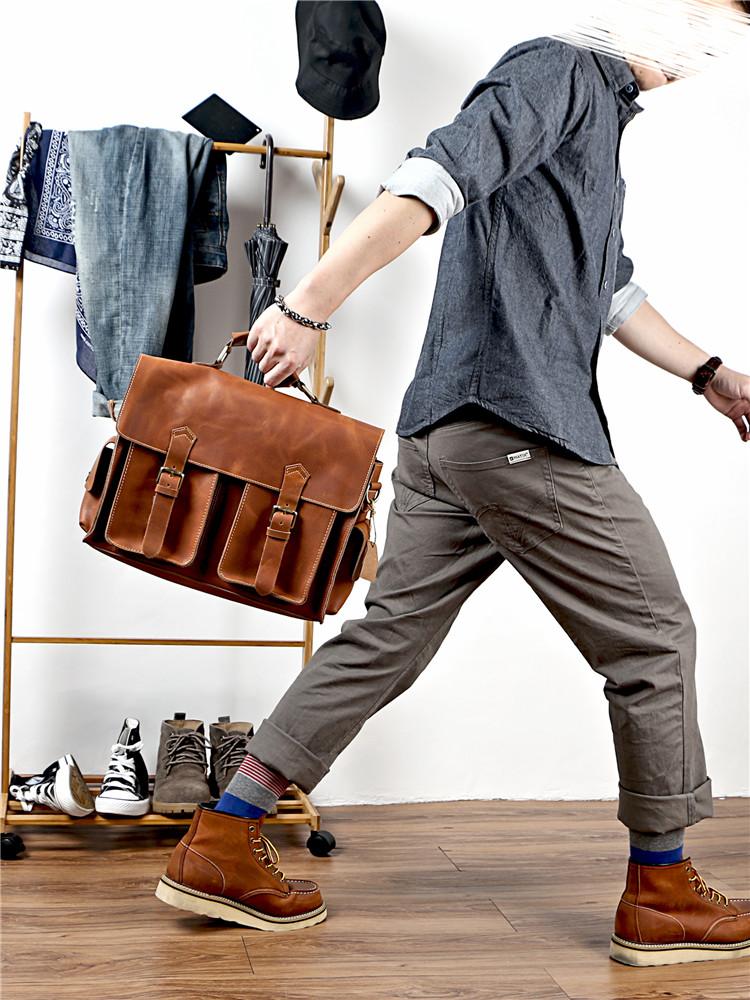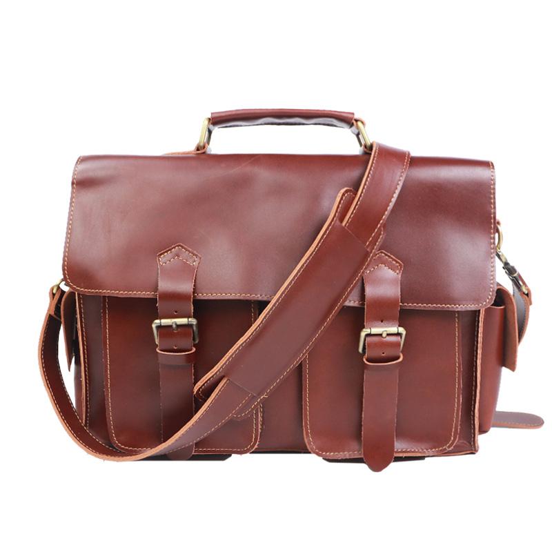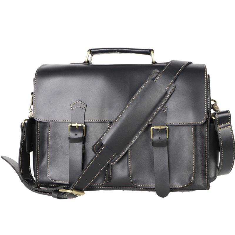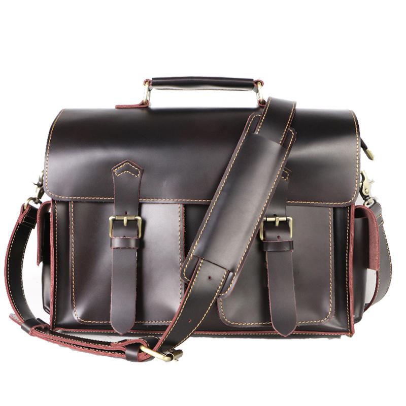 Style: Retro Deep Brown Leather Mens 14 inches Briefcase Dark Gray Work Briefcase Handbags For Men