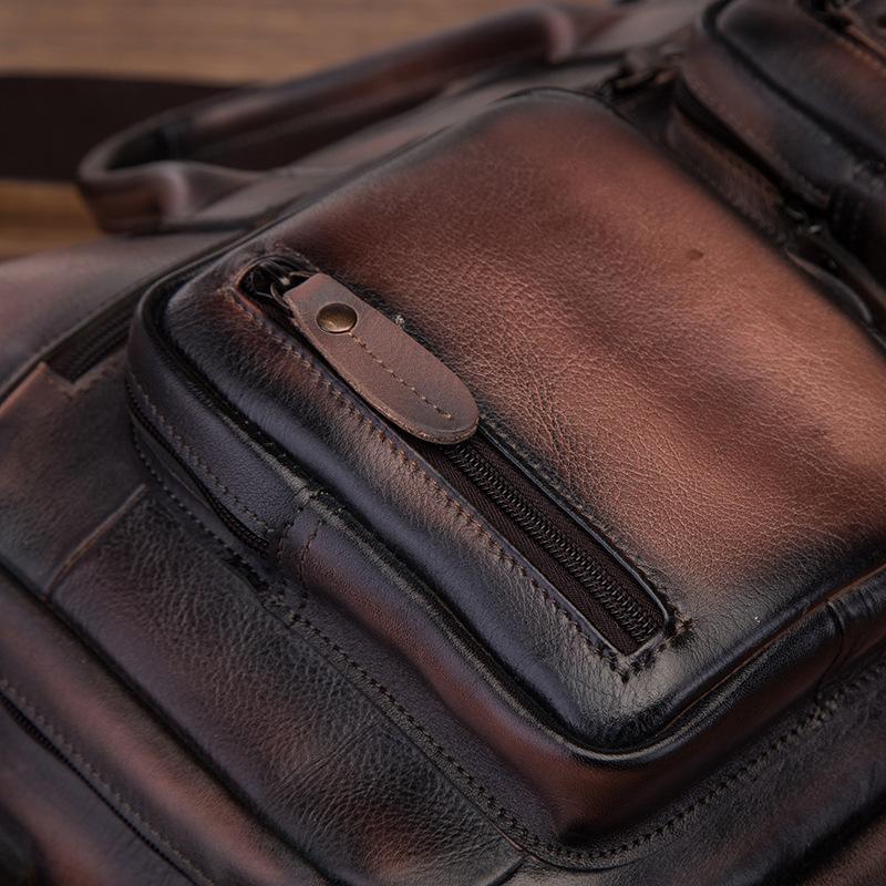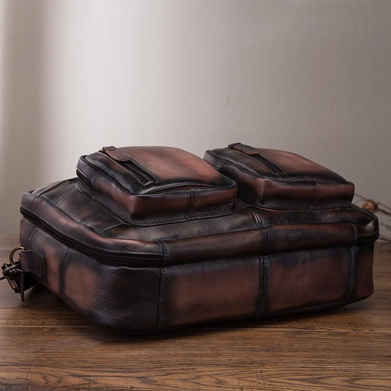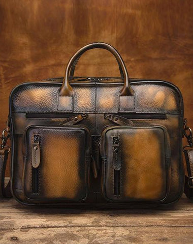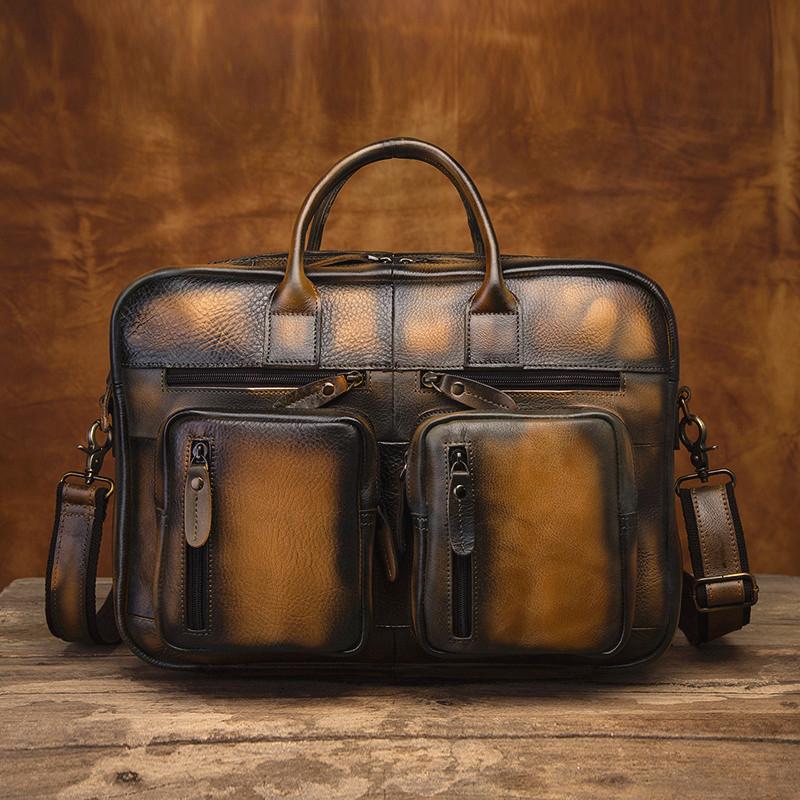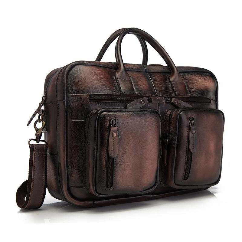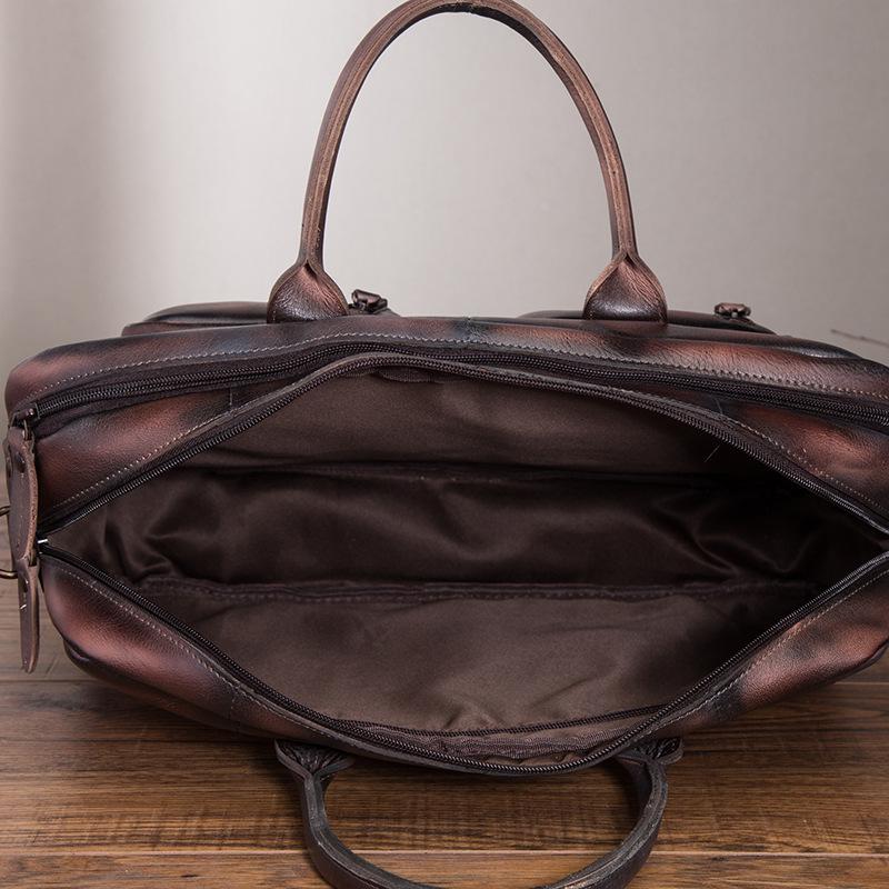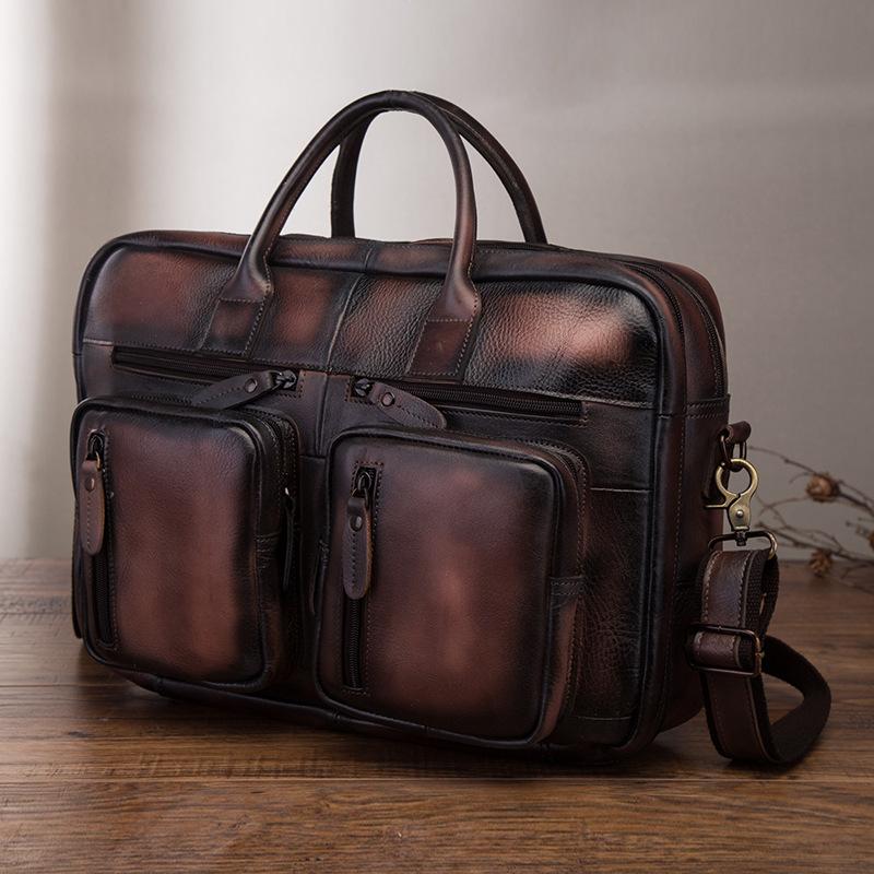 Style: Vintage Brown Leather Men's Briefcase 14'' Computer Bag Professional Handbag For Men