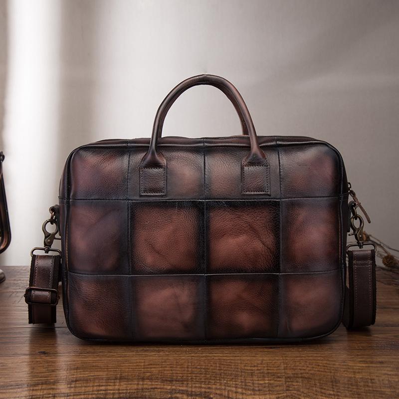 Design: Vintage Brown Leather Men's Briefcase 14'' Computer Bag Professional Handbag For Men
