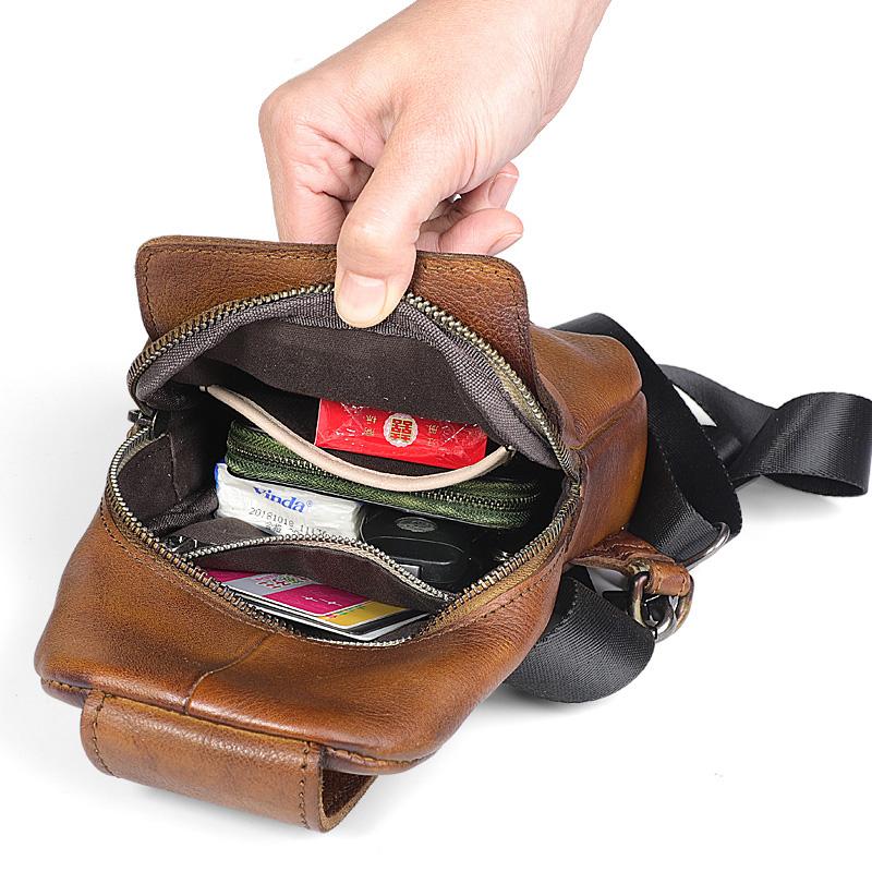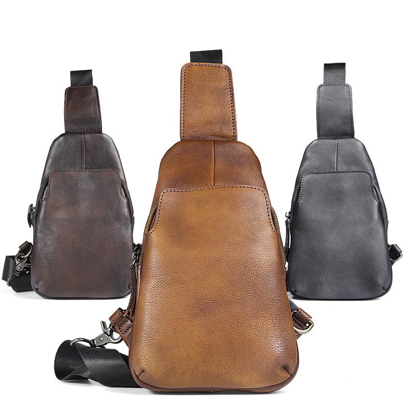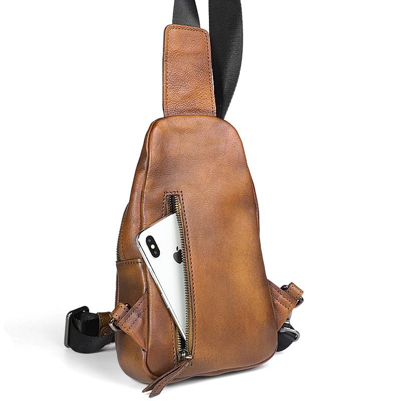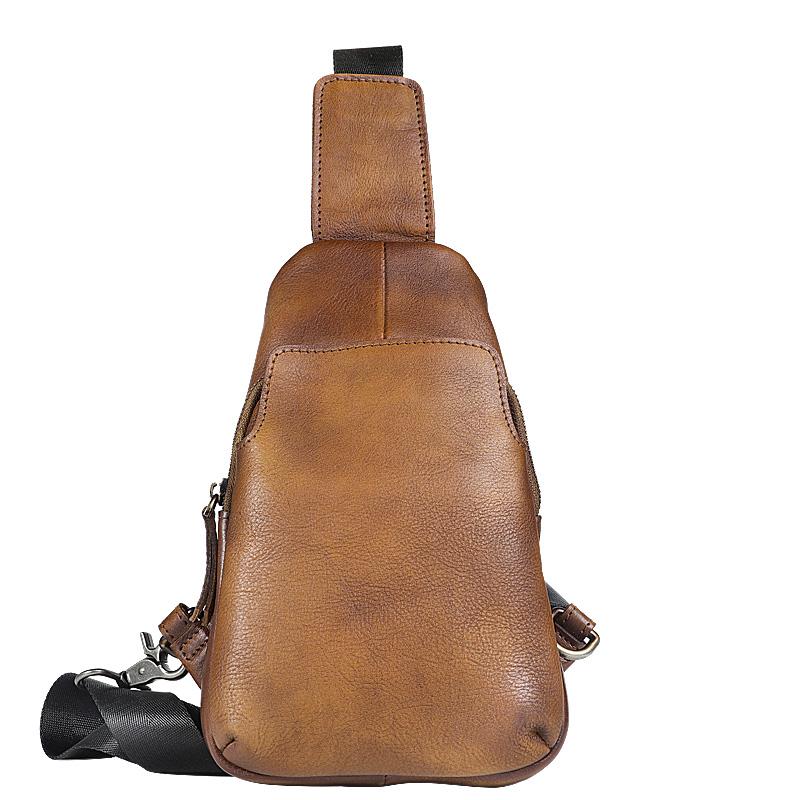 Design: Retro Handmade Brown Leather Mens Sling Bag Sling Shoulder Bag Chest Bag for men