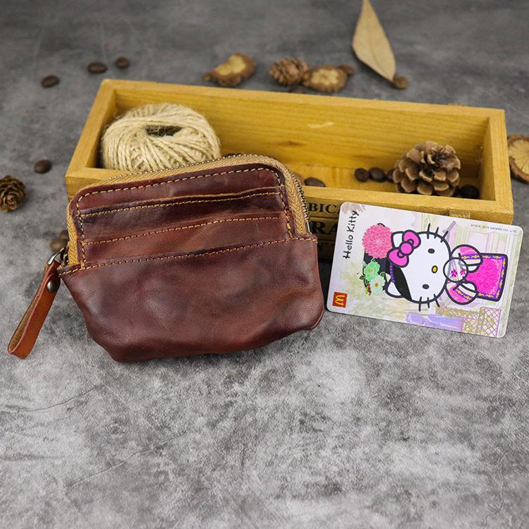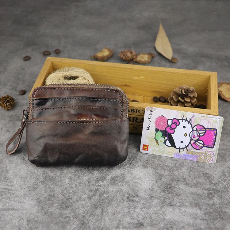 Design: Vintage Brown Mens Leather Small Card Wallet Front Pocket Wallet Change Wallet for Men