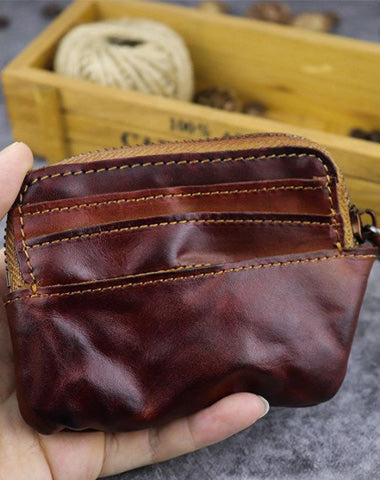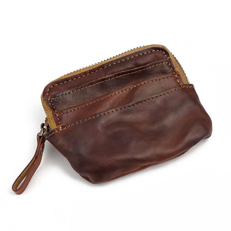 Style: Vintage Brown Mens Leather Small Card Wallet Front Pocket Wallet Change Wallet for Men