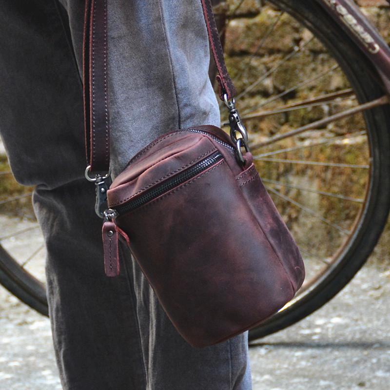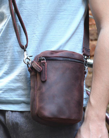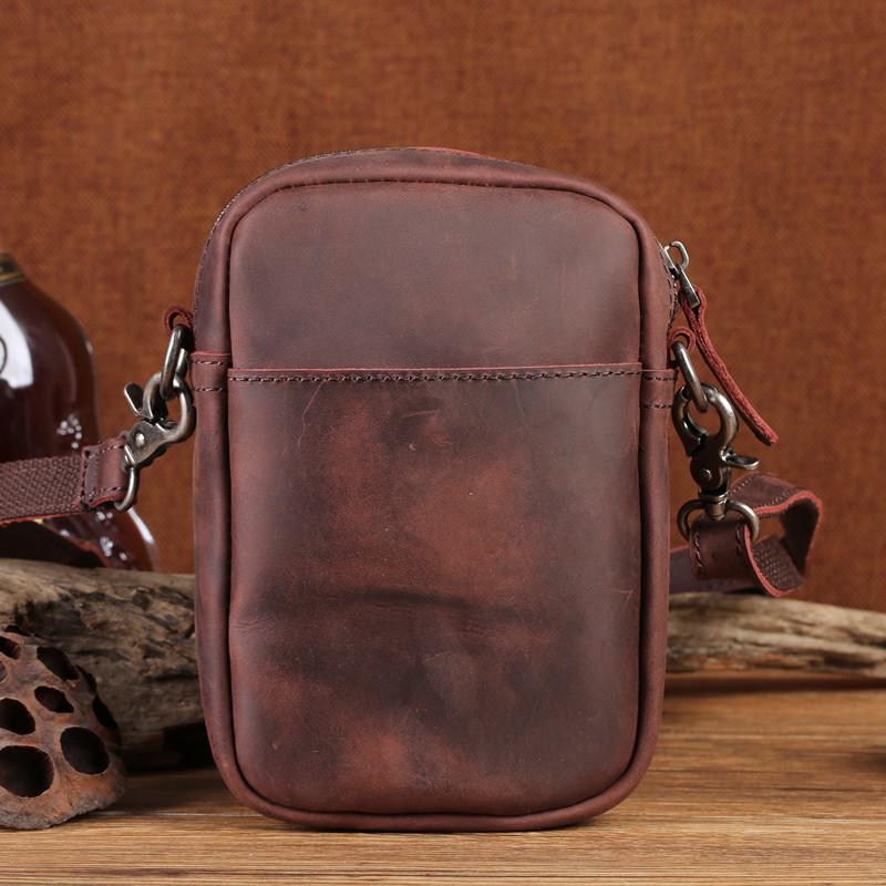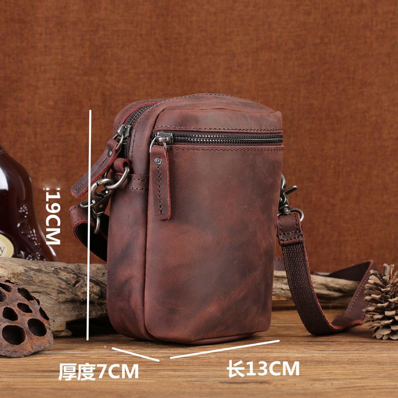 Design: Retro Leather Fanny Pack Men's Red Brown Shoulder Bag Waist Bag Messenger Bag For Men