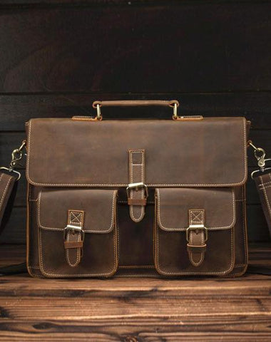 Style: Vintage Brown Leather Men's Professional Briefcase 13‘’ Laptop Shoulder Briefcase For Men