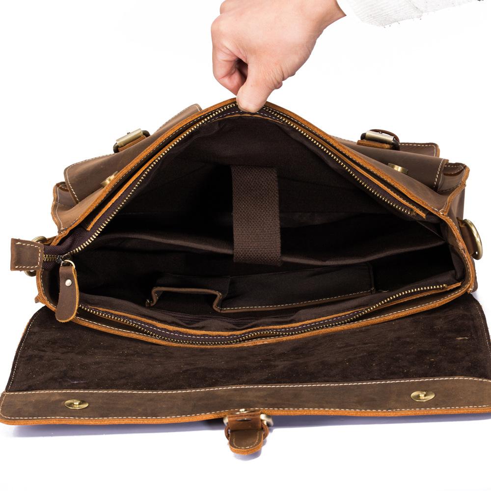 Vintage Brown Leather Men's Professional Briefcase 13‘’ Laptop Shoulder Briefcase For Men