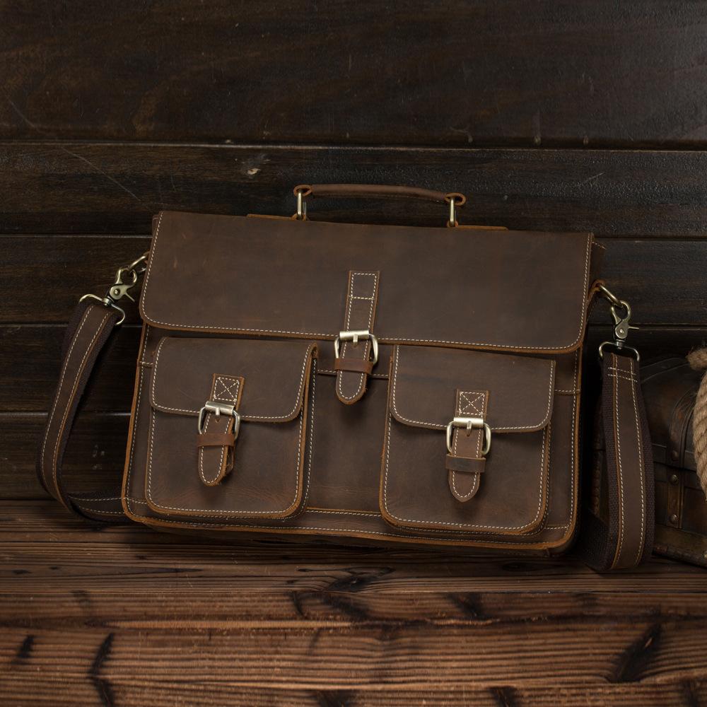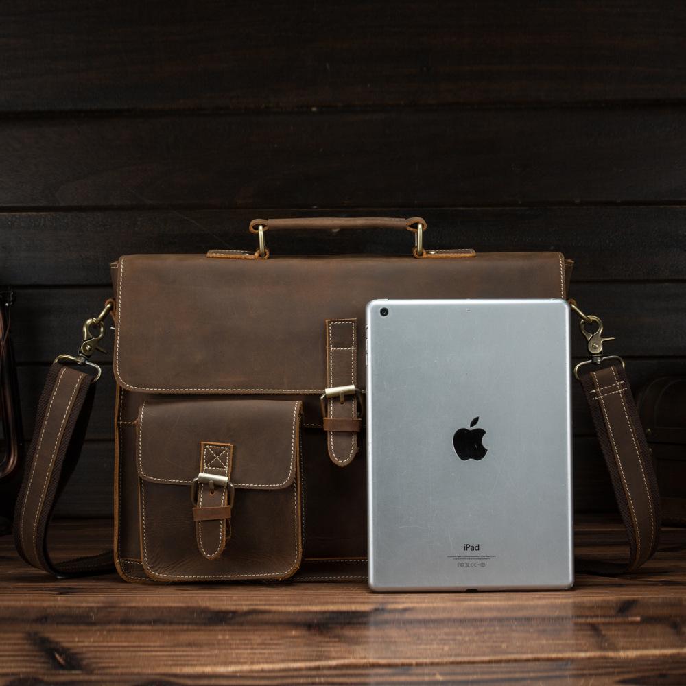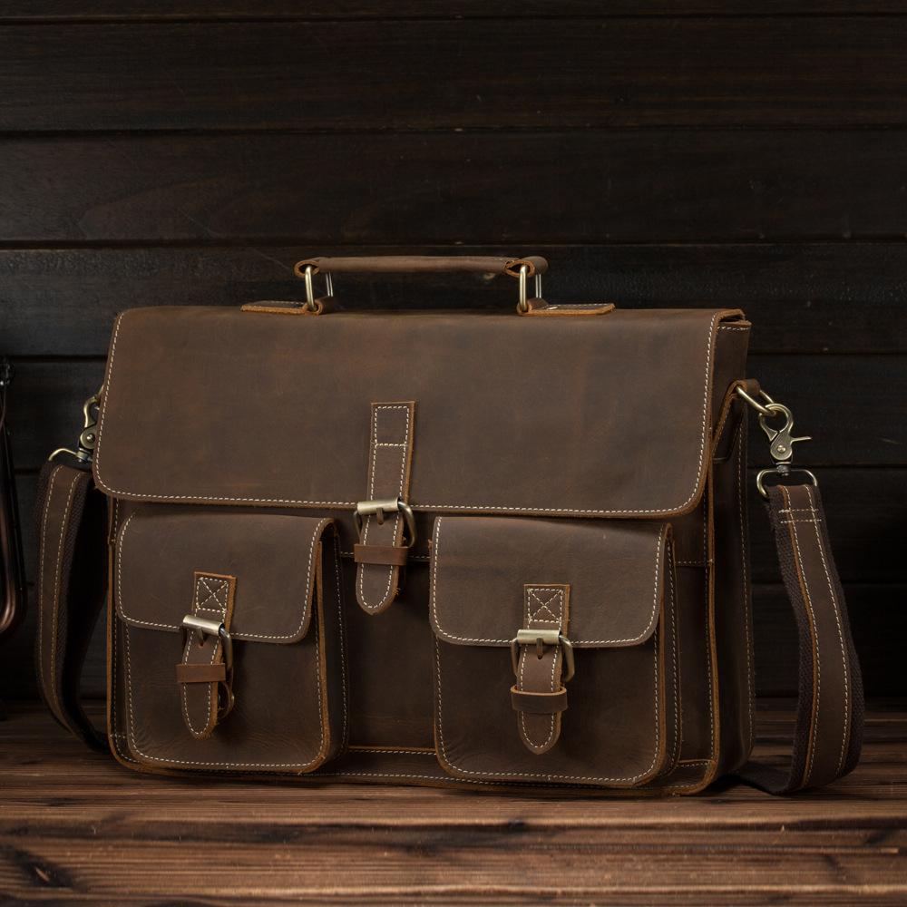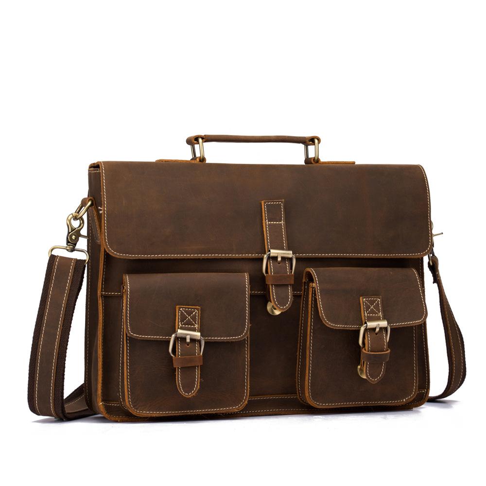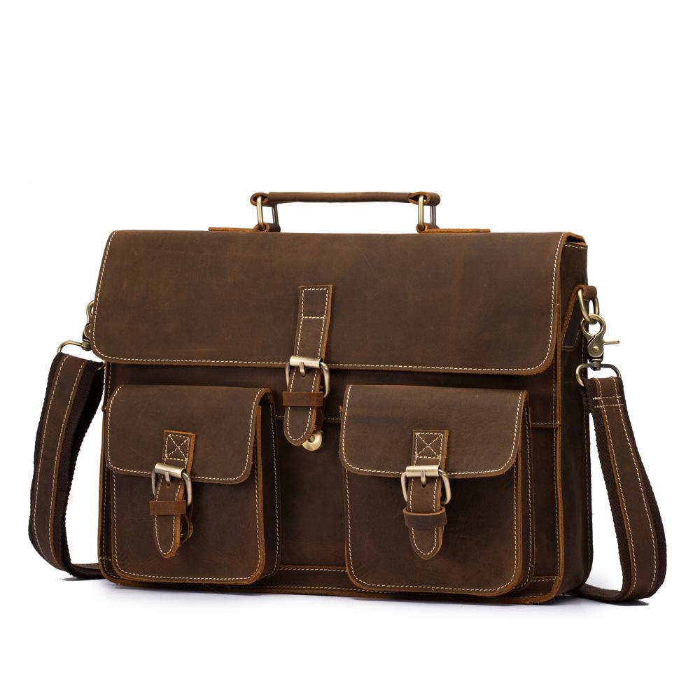 Design: Vintage Brown Leather Men's Professional Briefcase 13‘’ Laptop Shoulder Briefcase For Men