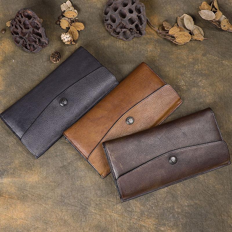 Style:Retro Leather Mens Cool Long Brown Multi-function Leather Envolpe Wallet Trifold Clutch Wallet for Men